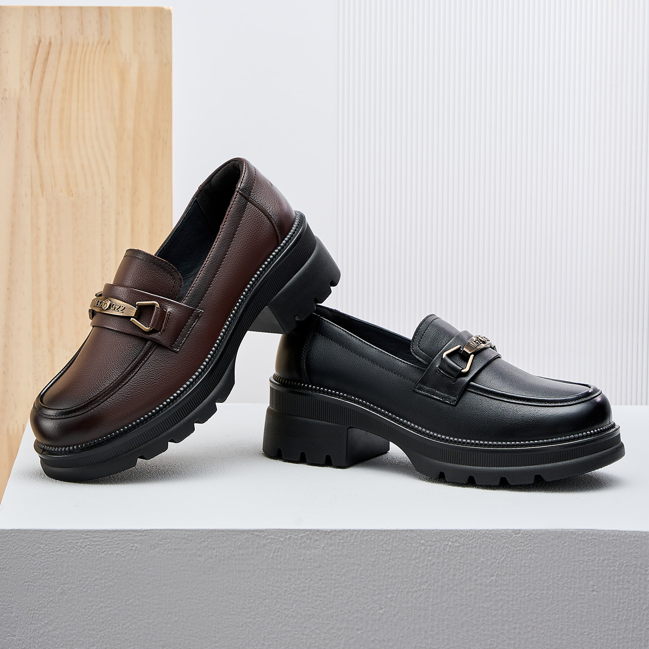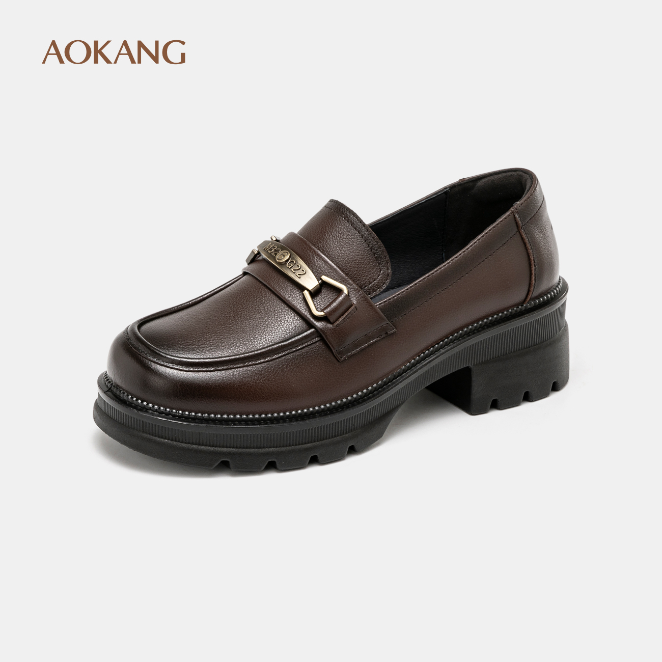 奥康女鞋 春秋真皮复古摩登厚底JK乐福鞋时尚百搭浅口单鞋