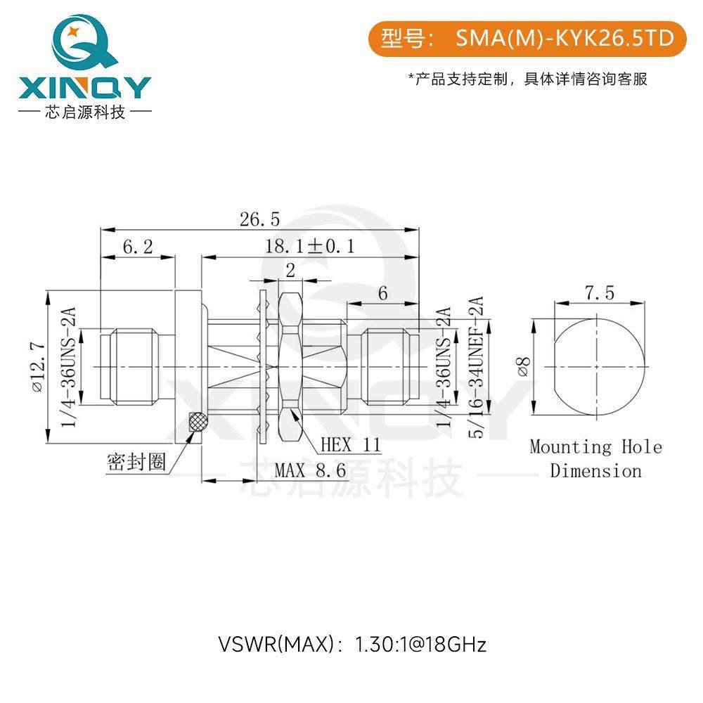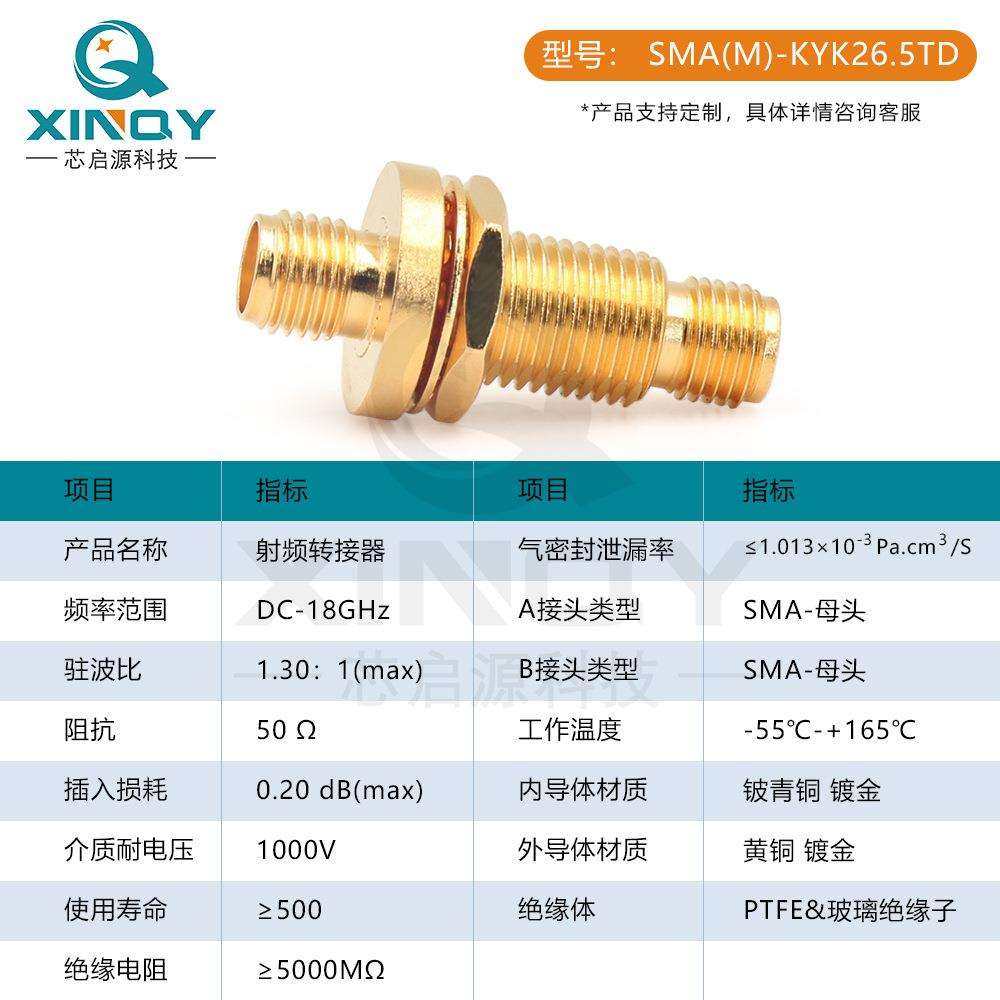 XINQY 玻璃烧结 气密穿墙转接器 SMA/母 0-18G 真空密封头 26.5mm