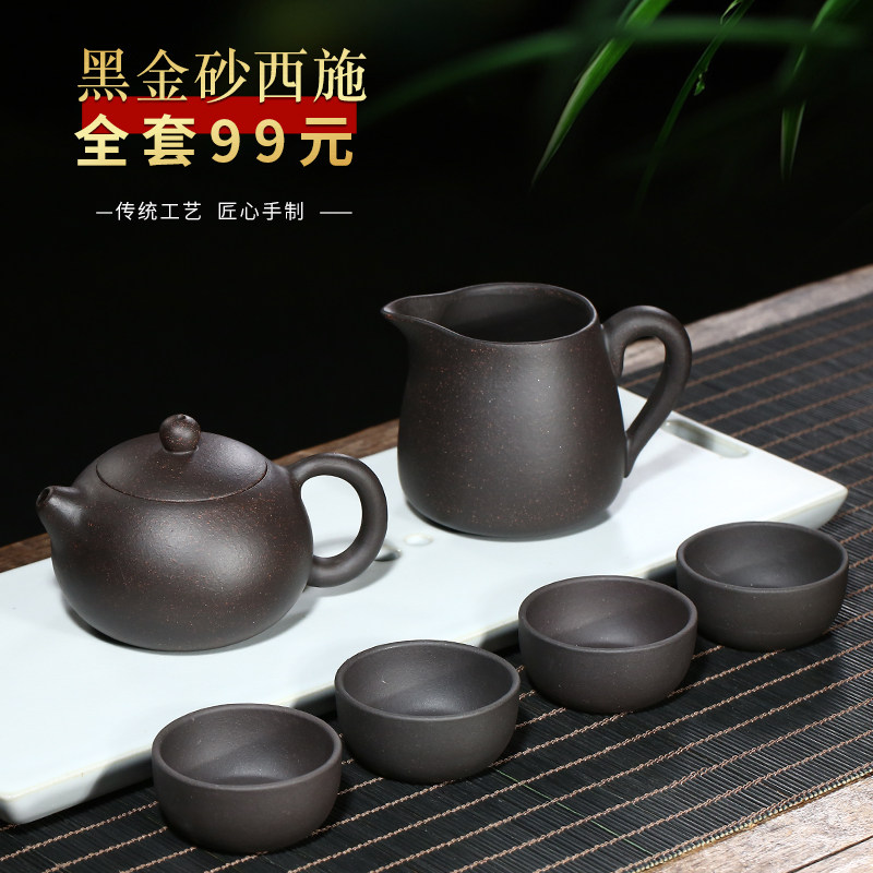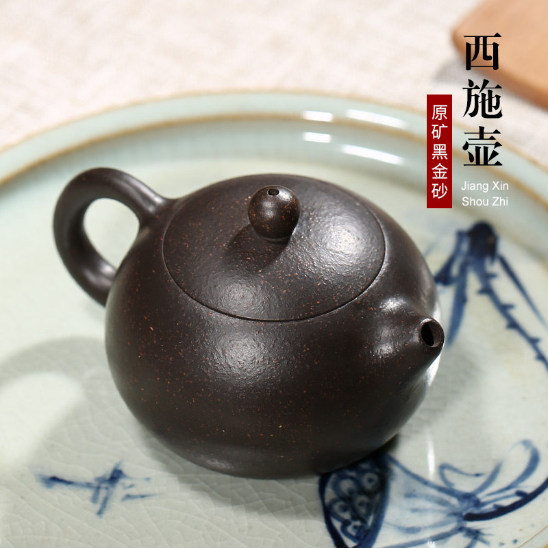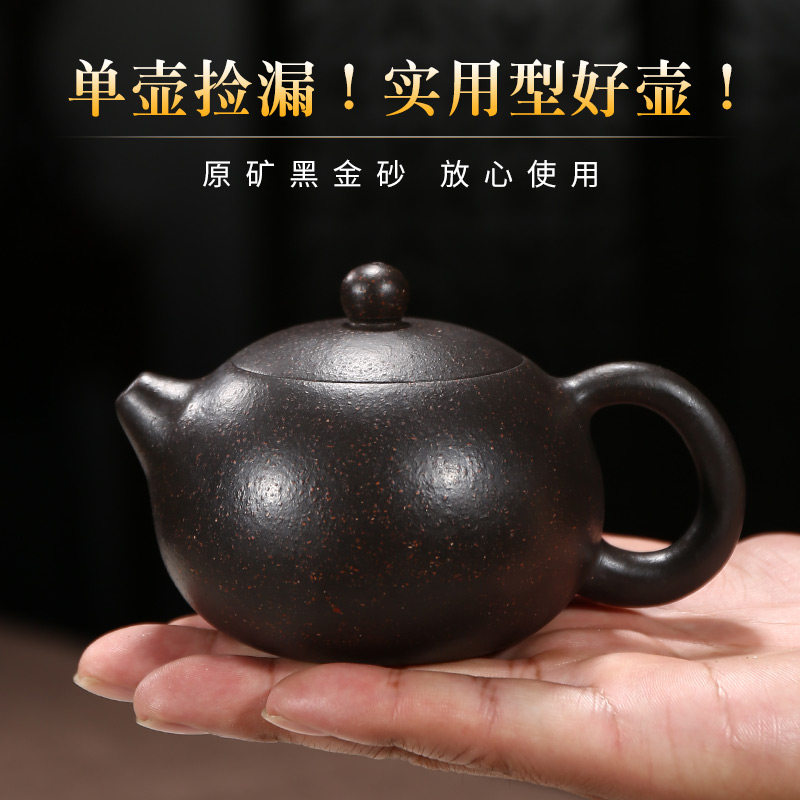 宜兴紫砂壶全纯手工泡茶壶茶具套装黑金砂西施壶单壶检漏家用名家