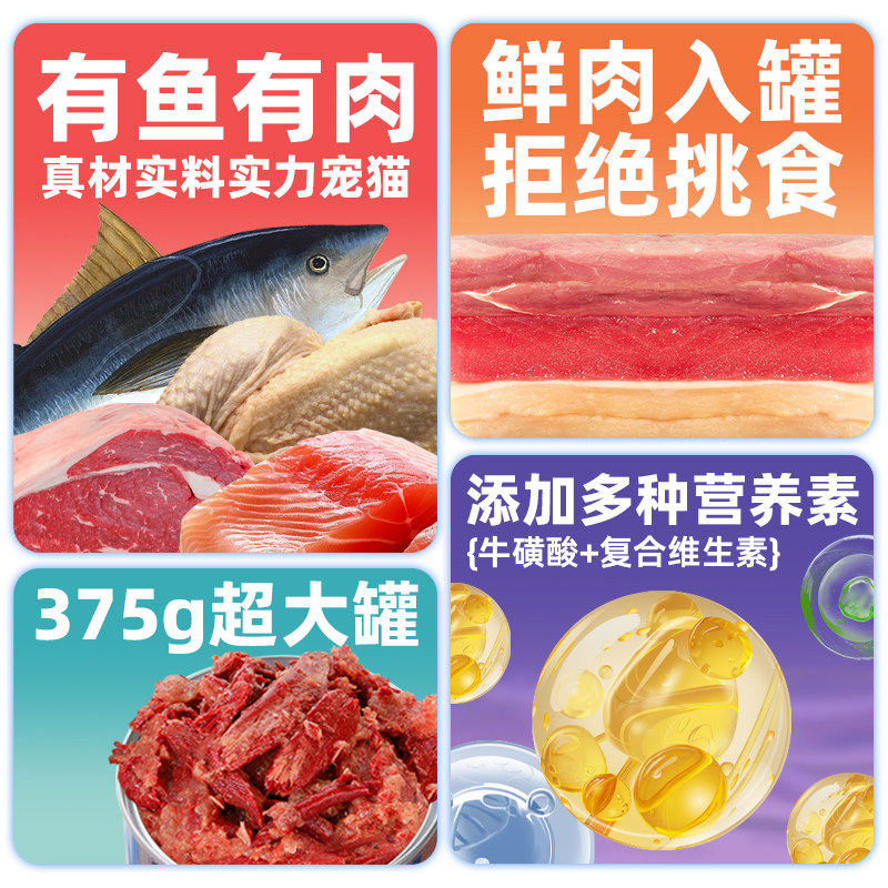 宠物猫罐头375g大罐金枪鱼猫零食成幼猫奶糕罐营养猫湿粮罐头整箱