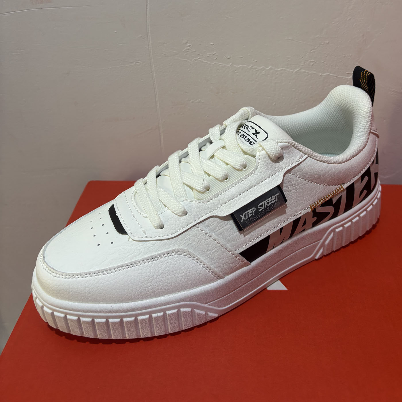 特步正品春秋休闲滑板鞋青年街头学院小白鞋男运动鞋977119310029