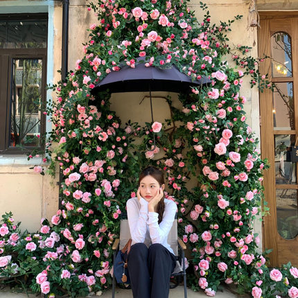 玫瑰瀑布仿真花网红打卡花墙背景墙造景布置藤蔓吊篮藤椅装饰吊顶