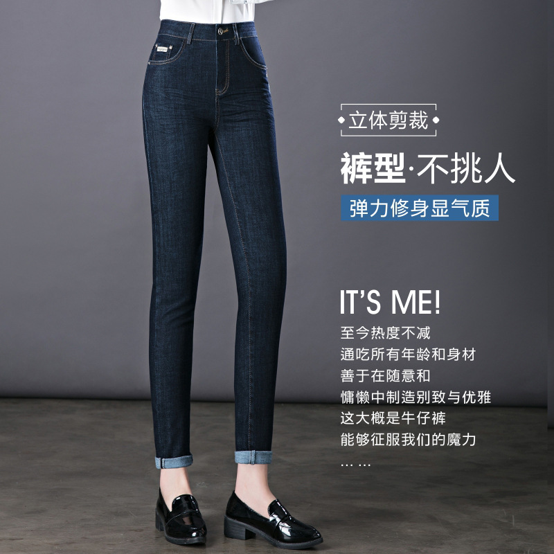 秋款高弹牛仔裤女新款修身小脚裤铅笔裤高腰显瘦显高紧身复古