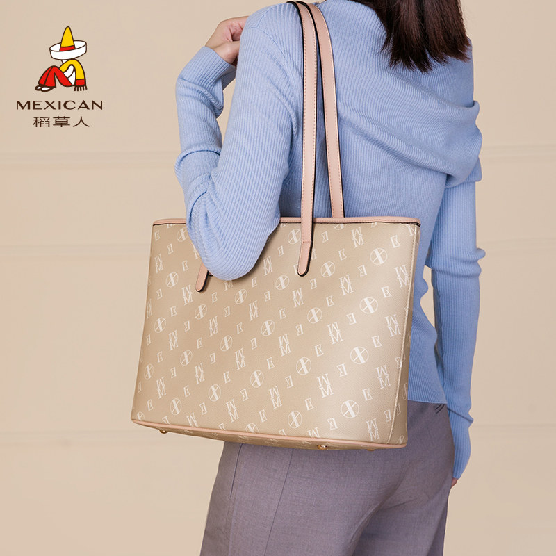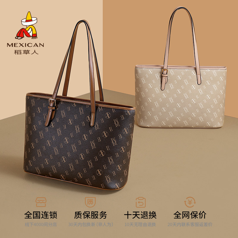 稻草人女包2025新款时尚手提包撞色复古托特包女大容量单肩包正品