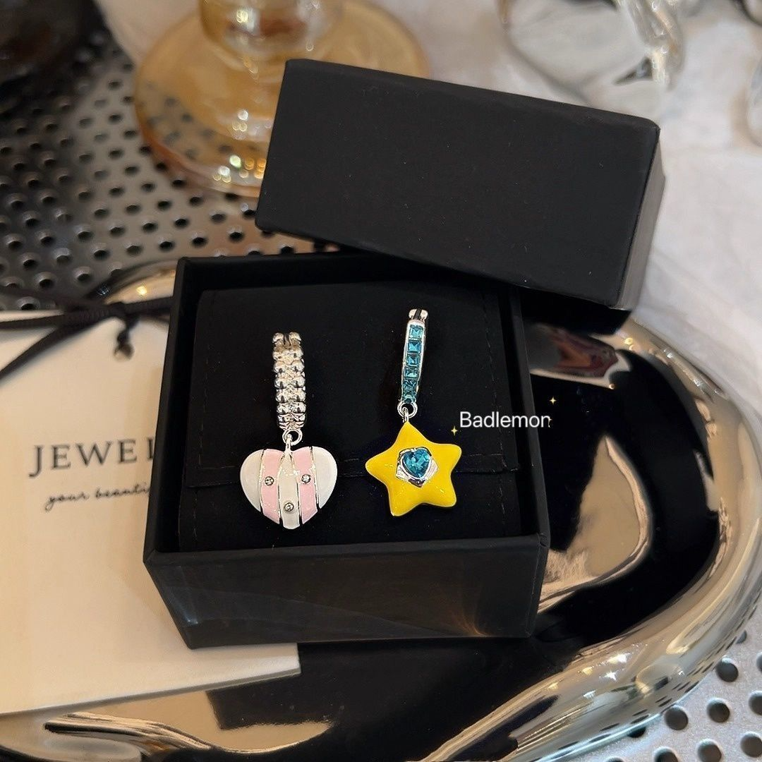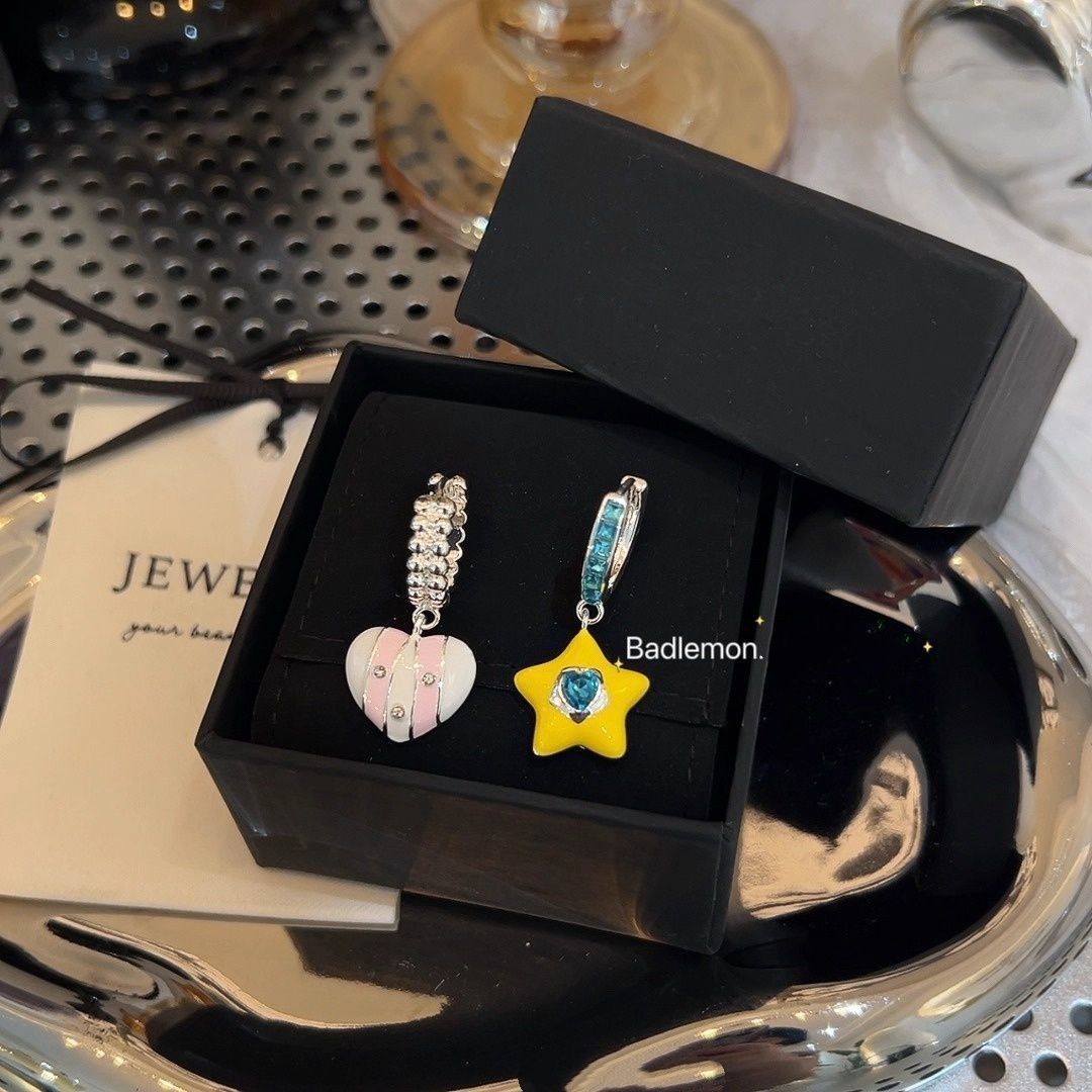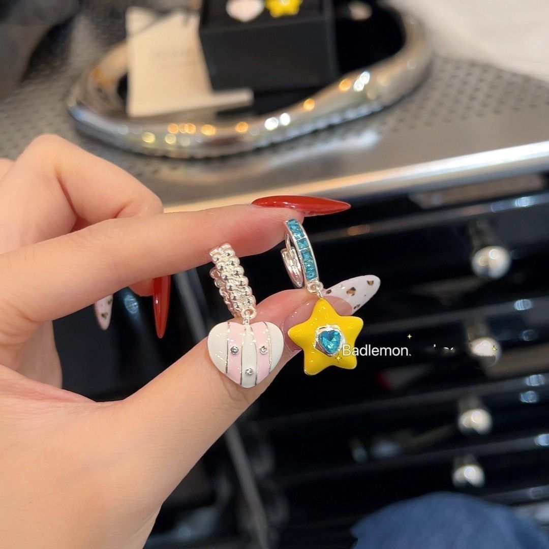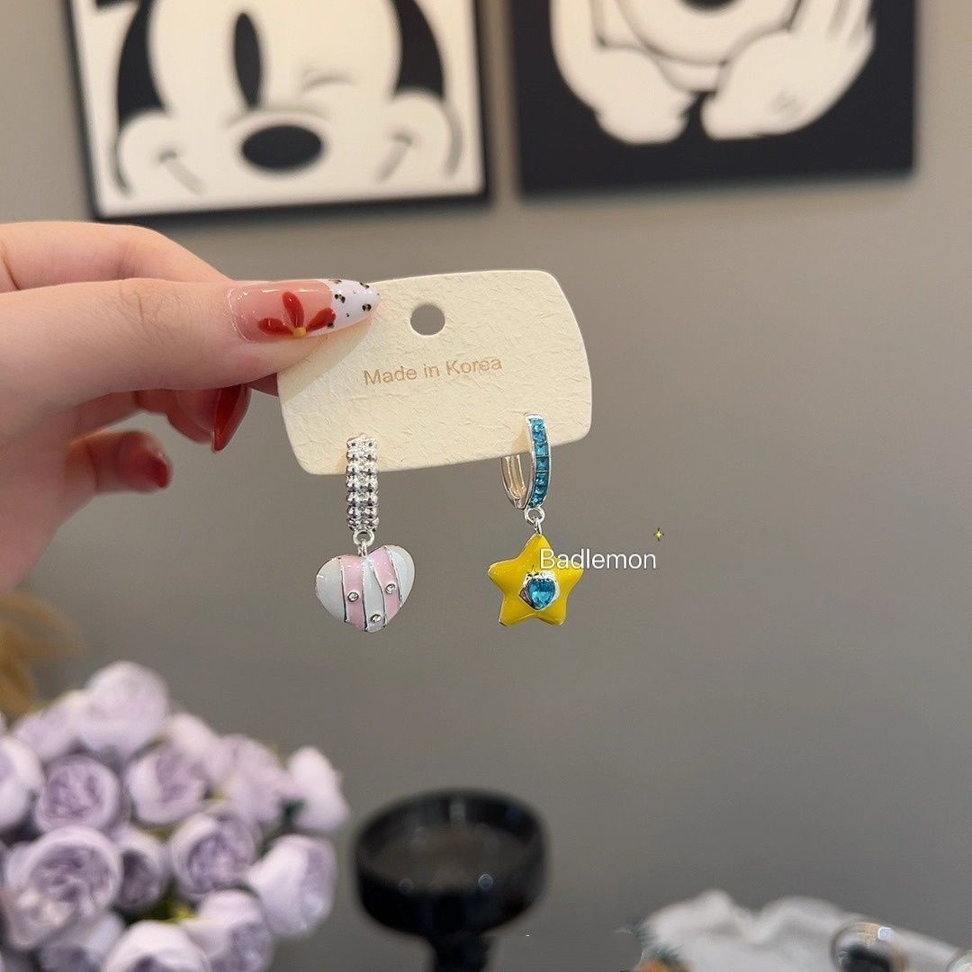 2025新款多巴胺彩色爱心耳环不对称耳圈五角星滴油卡通耳扣耳饰女