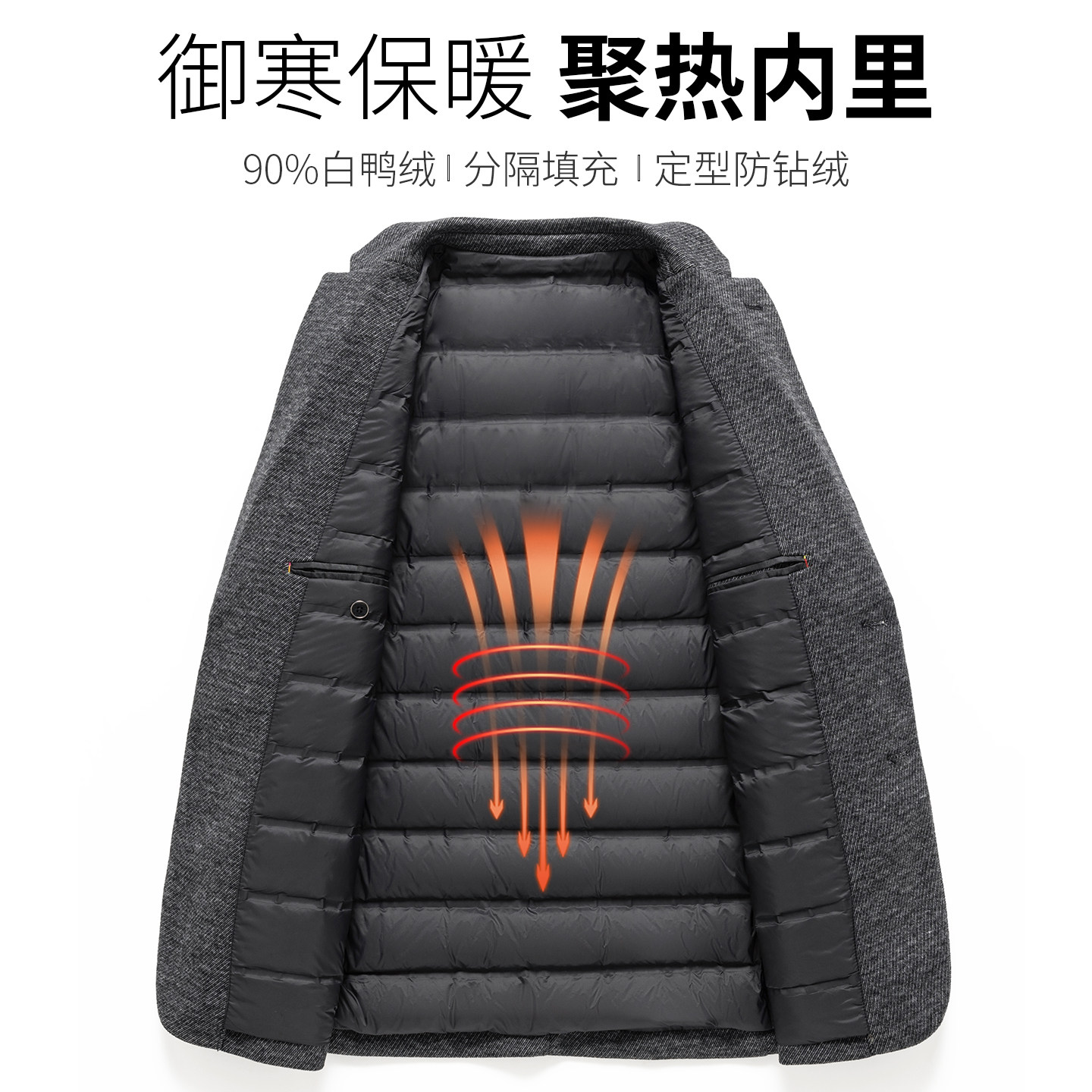 皮尔卡丹男士羊毛西装50多岁爸爸秋冬高级感外套休闲商务羽绒西服