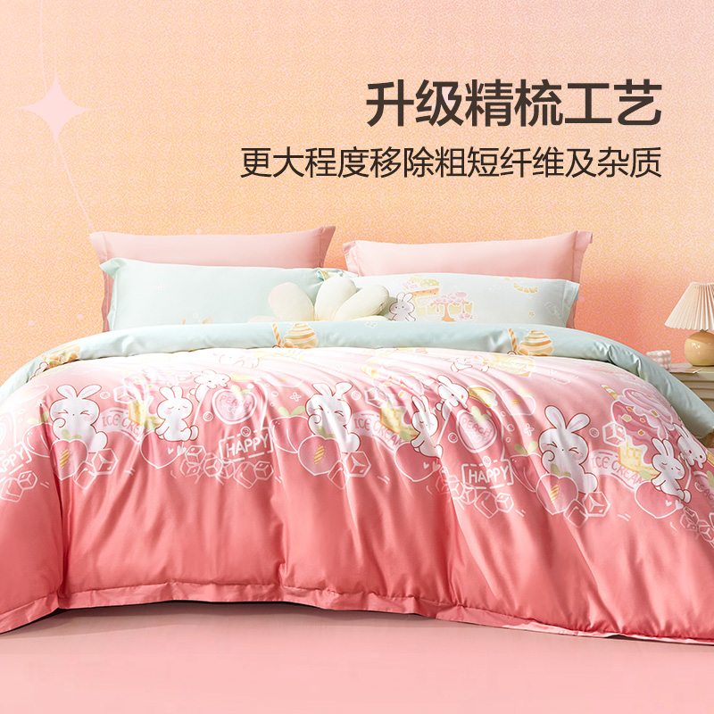 富安娜家纺四件套全棉纯棉少女心粉色床单被套ins公主风床上用品