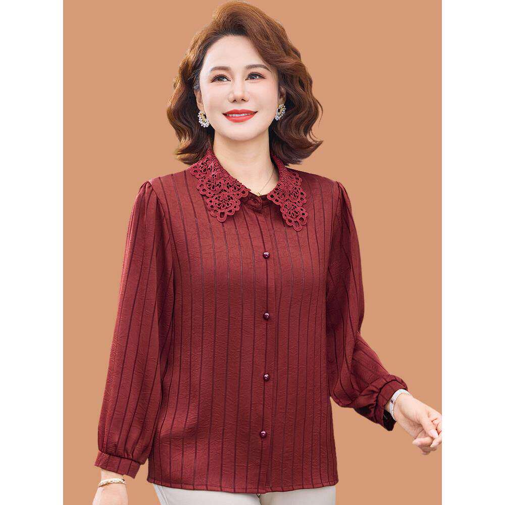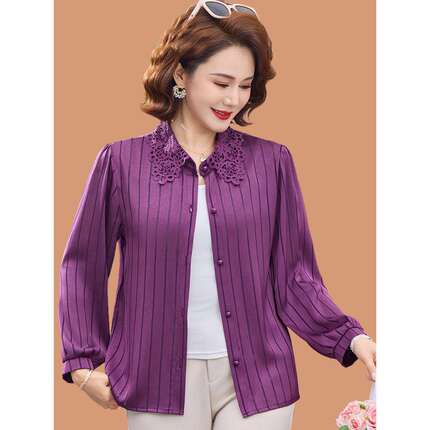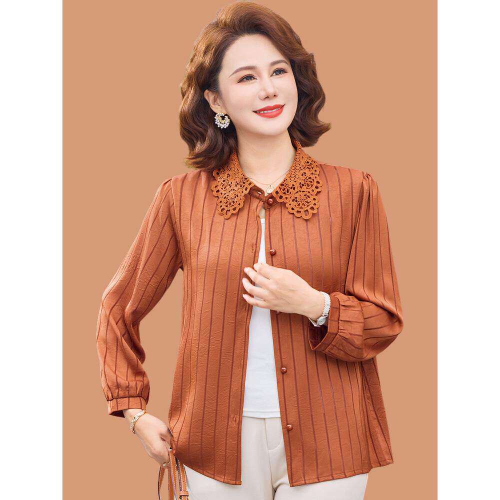 中年女士衬衫女春秋2026新款妈妈衬衣春季薄款开衫长袖竖条纹上衣