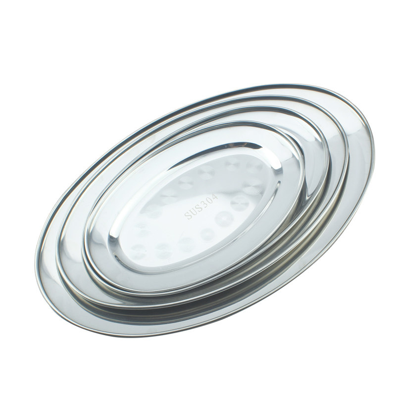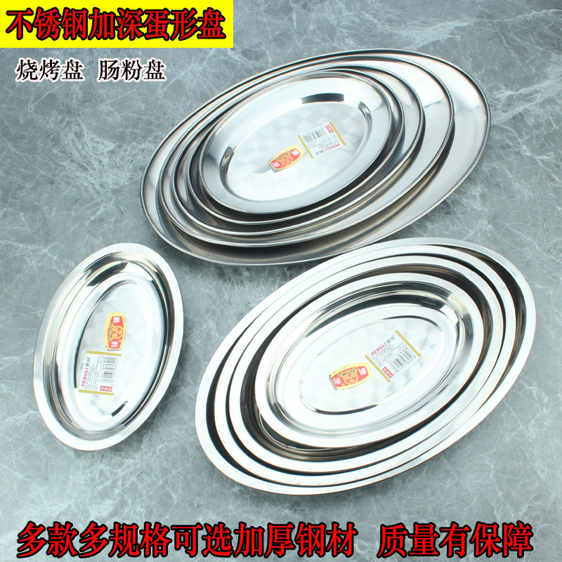 不锈钢椭圆盘肠粉盘蛋形盘加深鱼盘商用烧烤盘地摊火锅自助小菜碟
