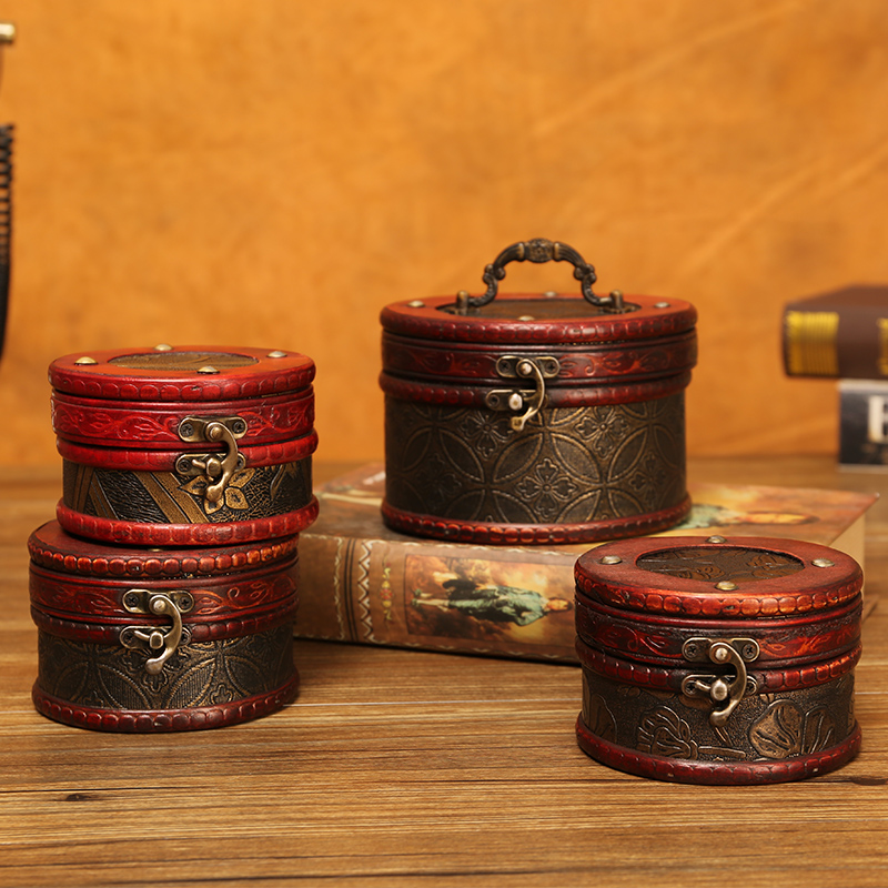 复古小号木质圆柱收纳盒高档储物盒儿童首饰盒精致包装盒礼盒木盒