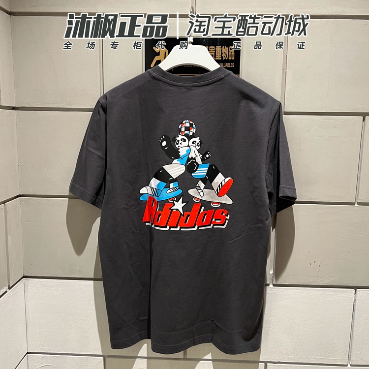 正品阿迪达斯短袖男子卡通熊猫纯棉圆领透气运动T恤IP3963 IP3964