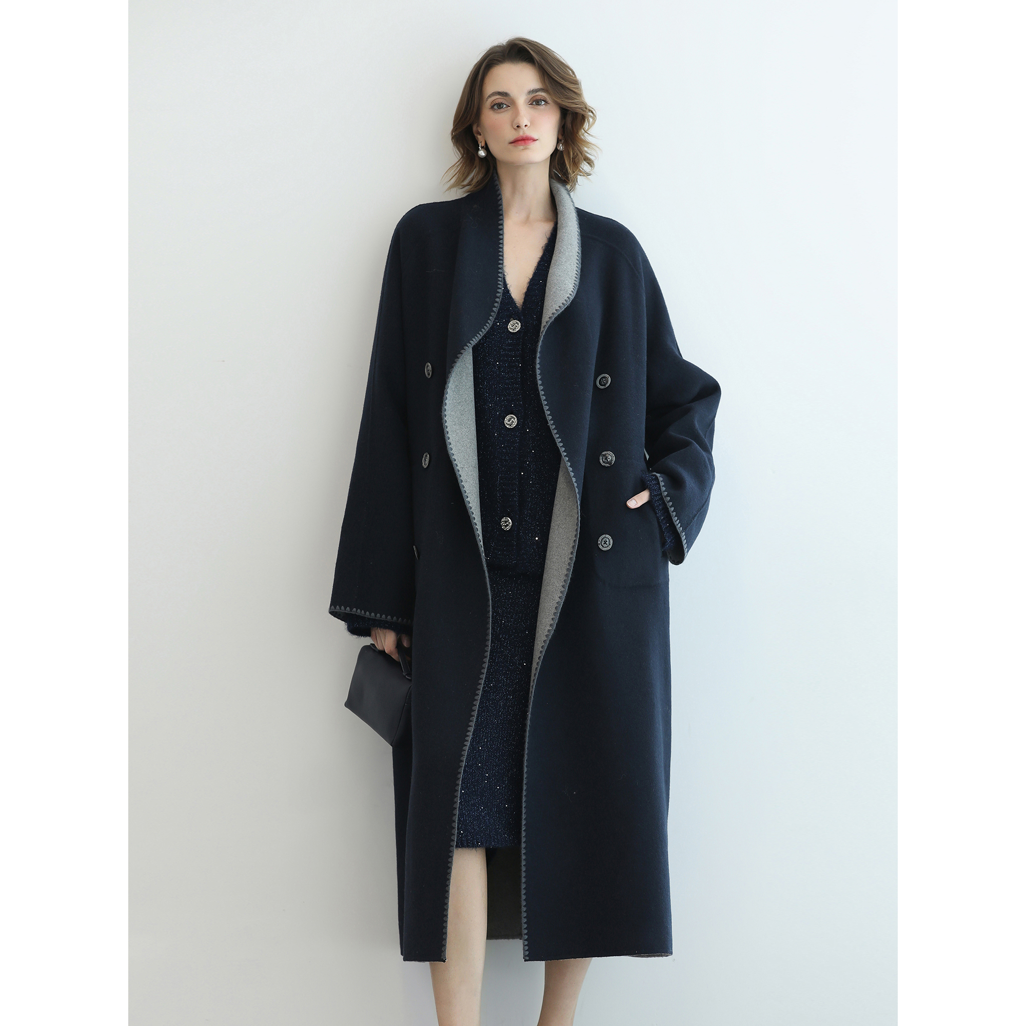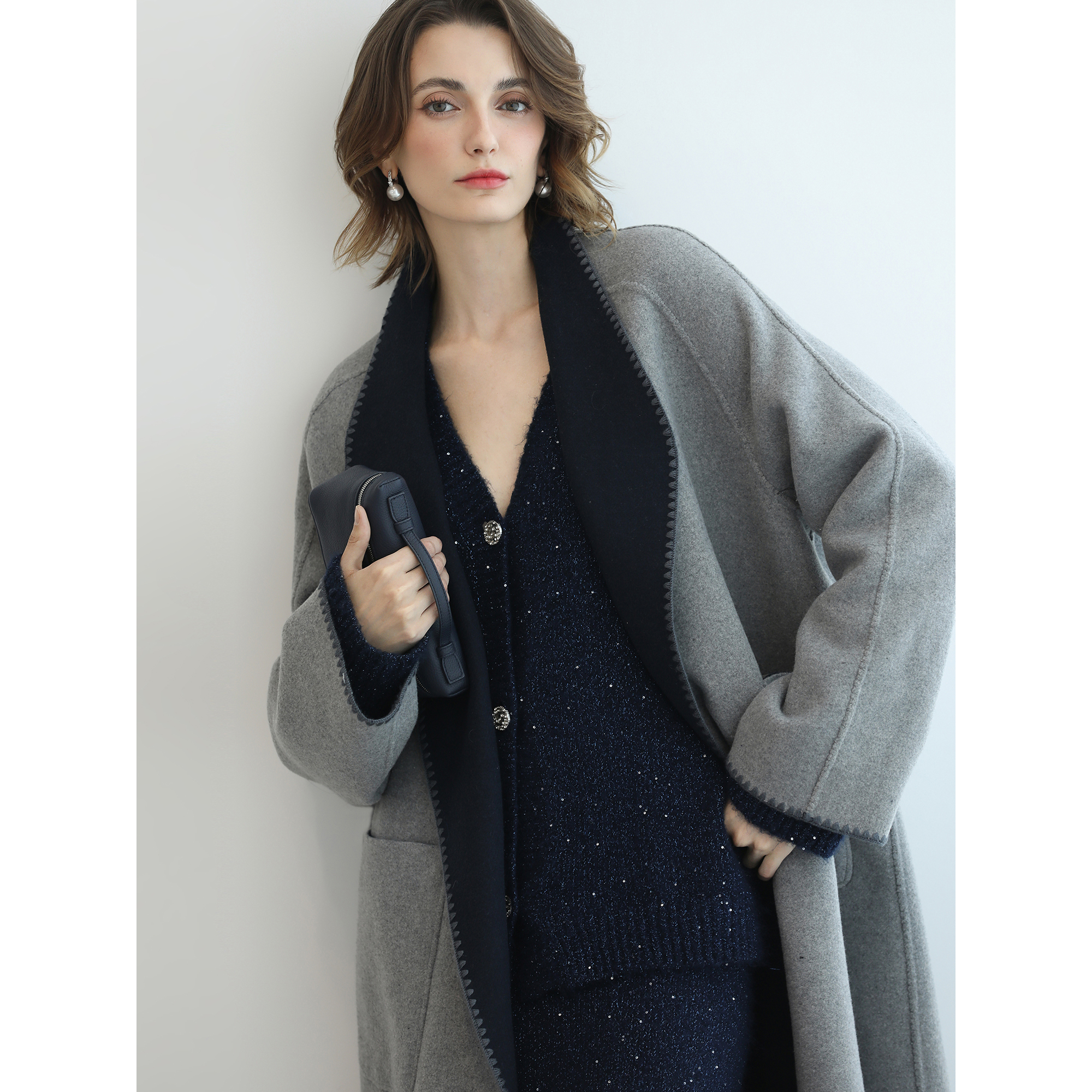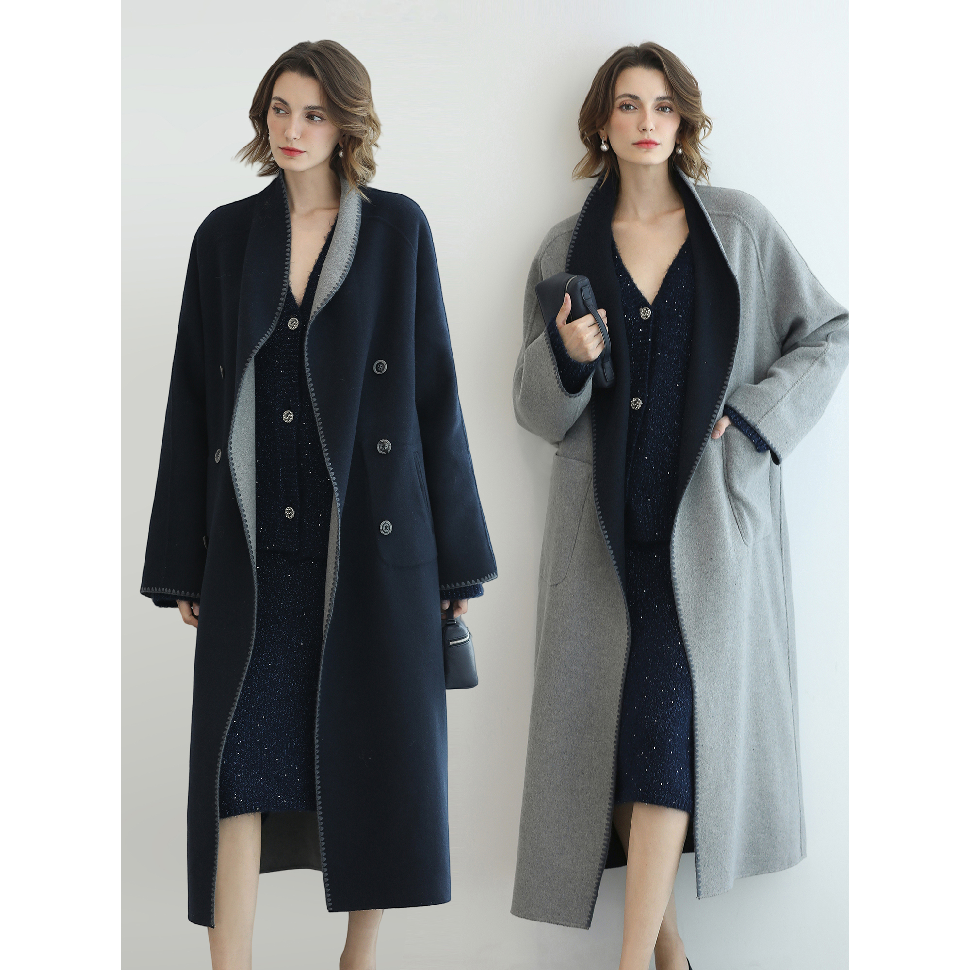 预售COCOBELLA[两面穿]长款羊毛女士大衣贝壳绣毛呢外套WL7062-2