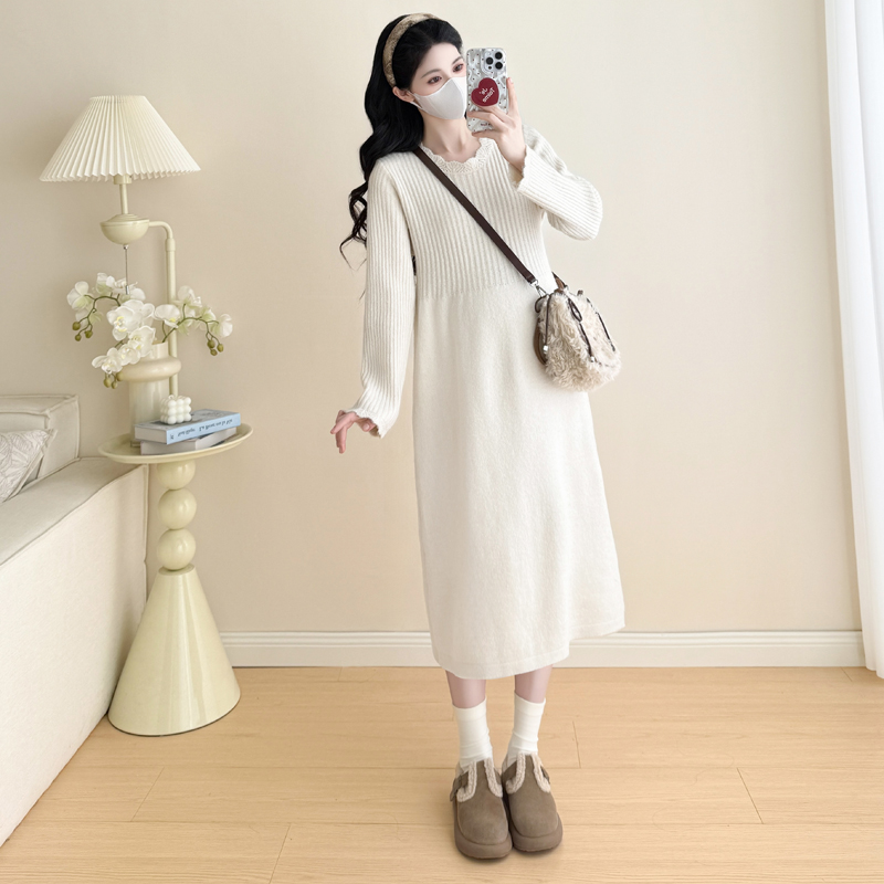 婧麒孕妇装秋冬连衣裙时尚2025新款针织毛衣裙子洋气宽松中长款