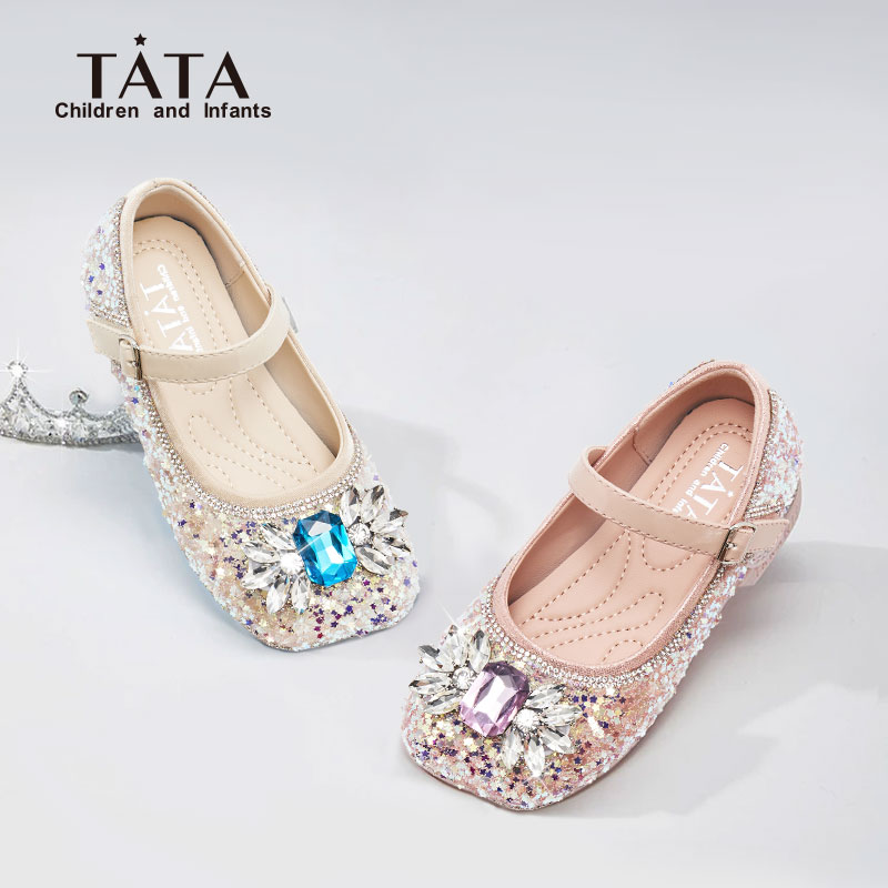 TATA他她童鞋女童公主鞋春秋新款女宝宝软底单鞋水晶鞋闪亮蝴蝶结