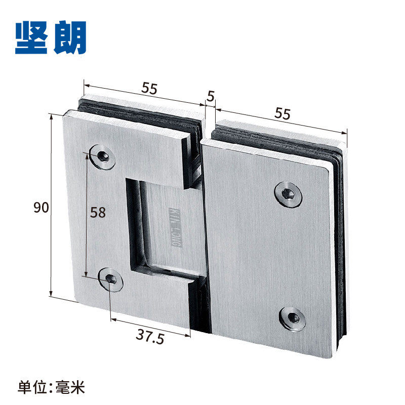 【坚朗】304不锈钢玻璃门合页180度铰链淋浴房配件合叶WW571105