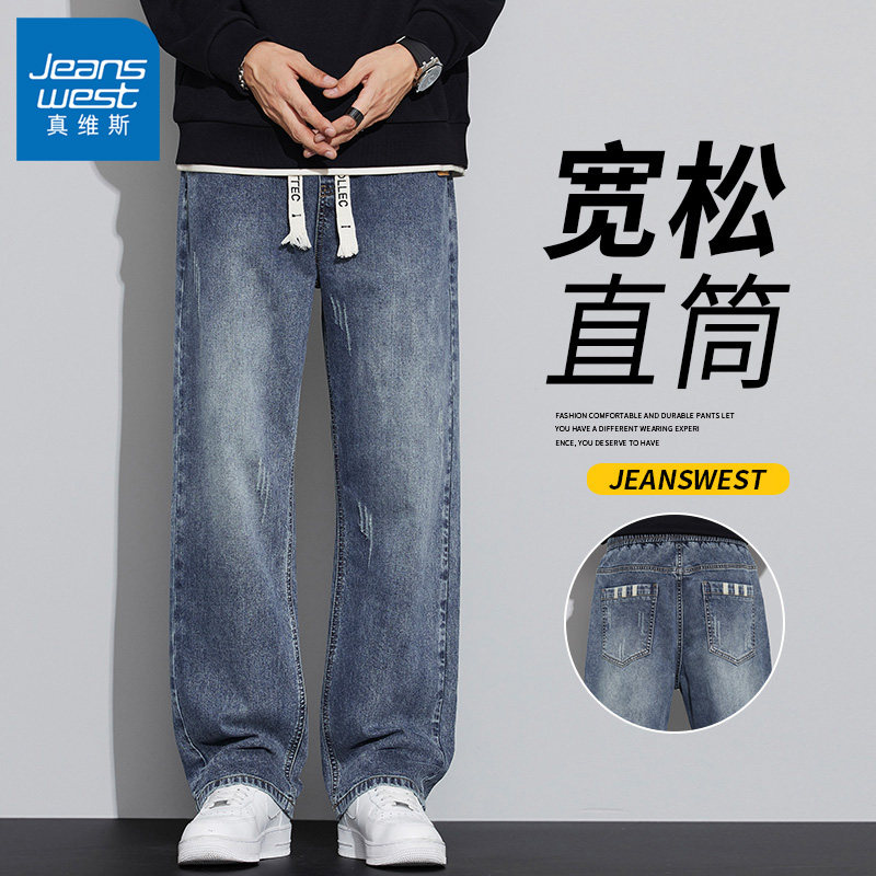 真维斯加绒牛仔裤男士秋冬季新款宽松直筒保暖潮牌男生休闲长裤子