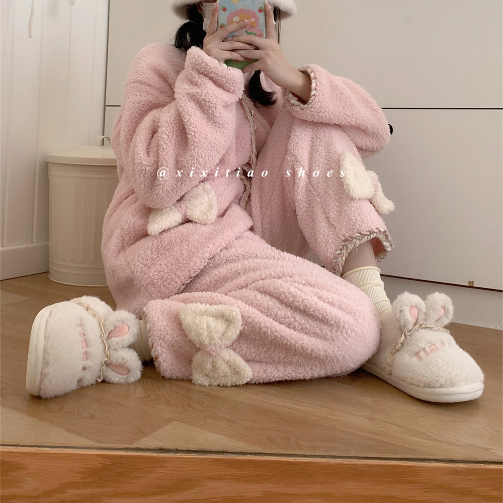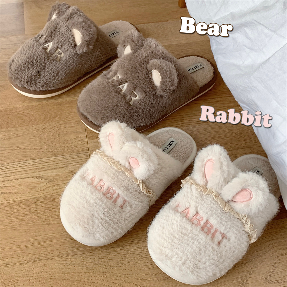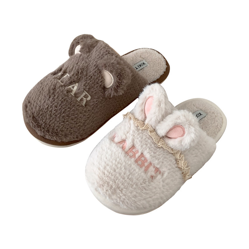 细细条卡通可爱小熊兔子亲子棉拖鞋保暖防滑毛绒月子鞋男女冬季