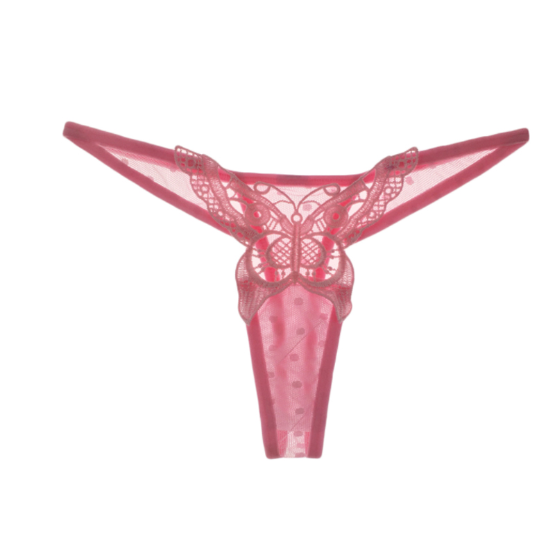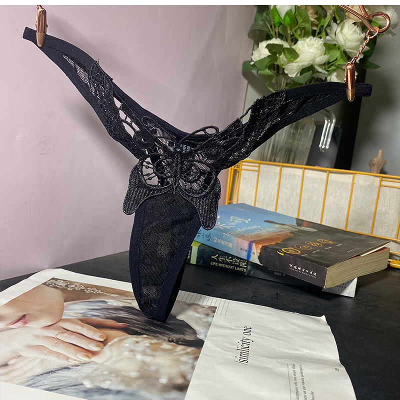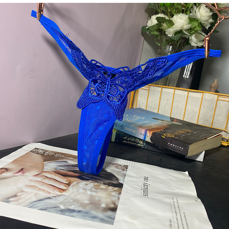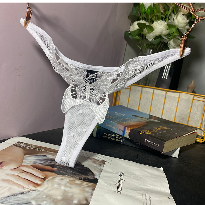 美蝶刺绣透明性感内裤女士低腰简约镂空波点网纱丁字裤Underwear