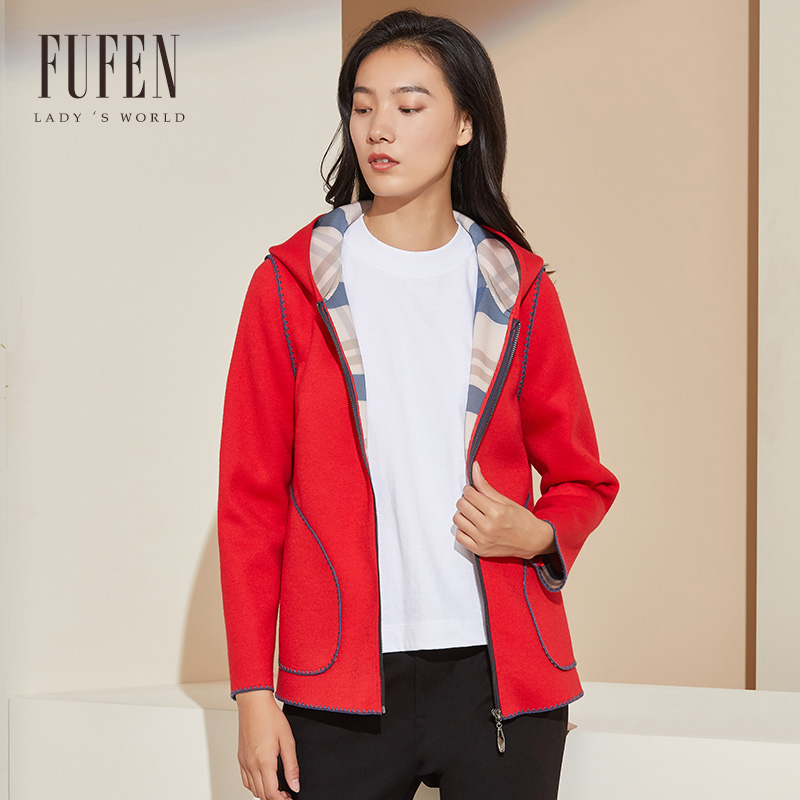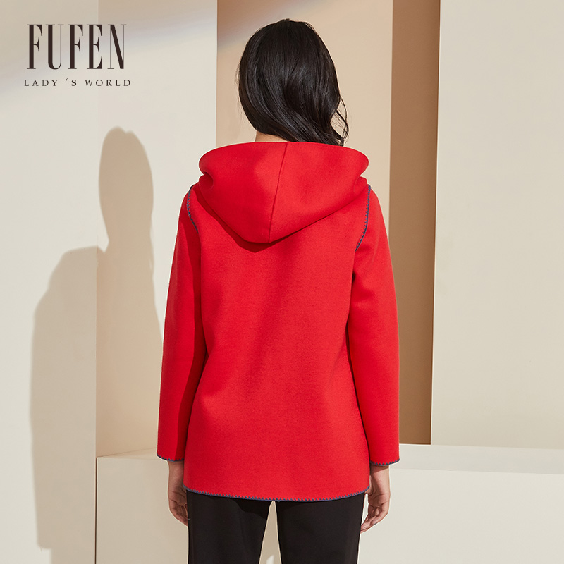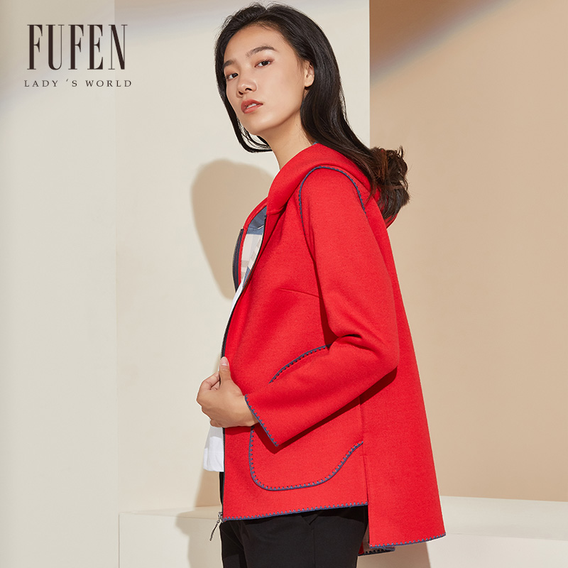FUFEN福芬冬季新短款外套羊毛连帽休闲高端气质拉链FS-14398