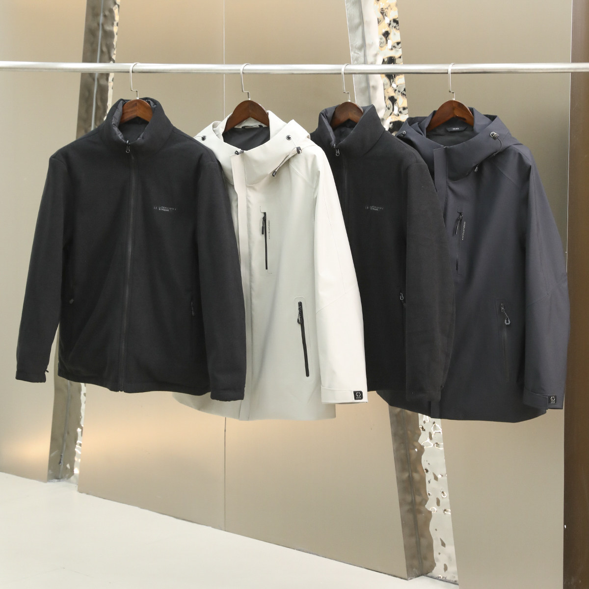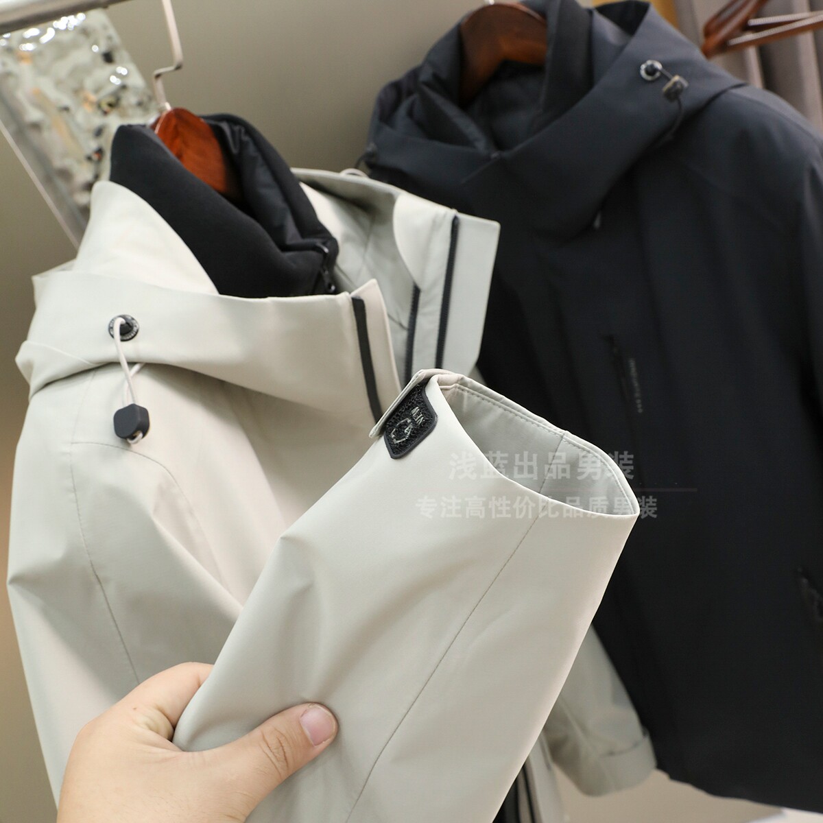 一衣三穿 90鹅绒 可脱卸压胶内胆 男士户外防水连帽冲锋衣羽绒服
