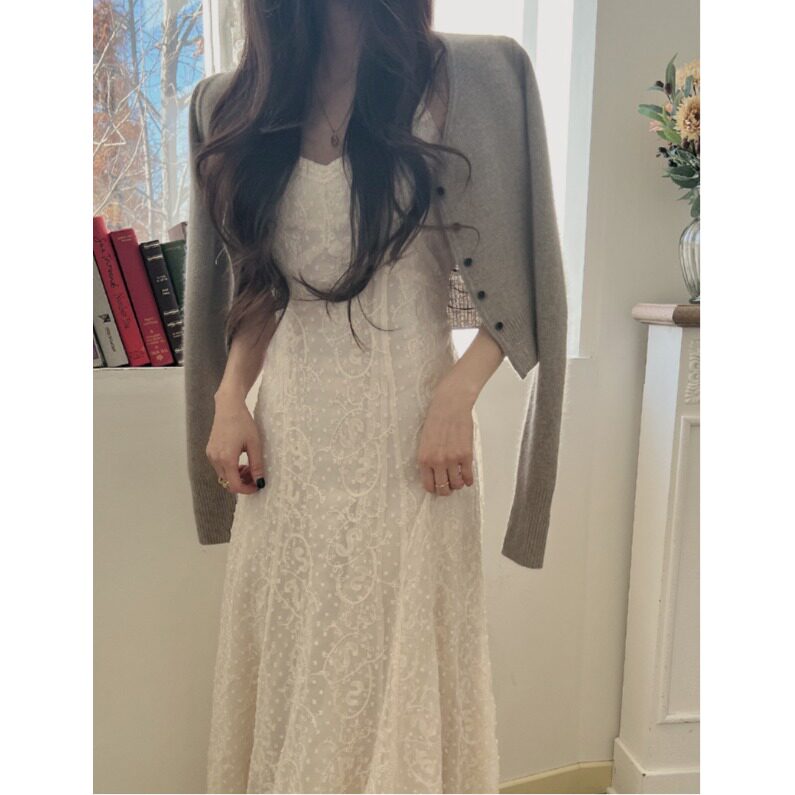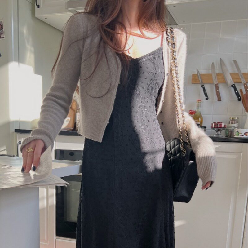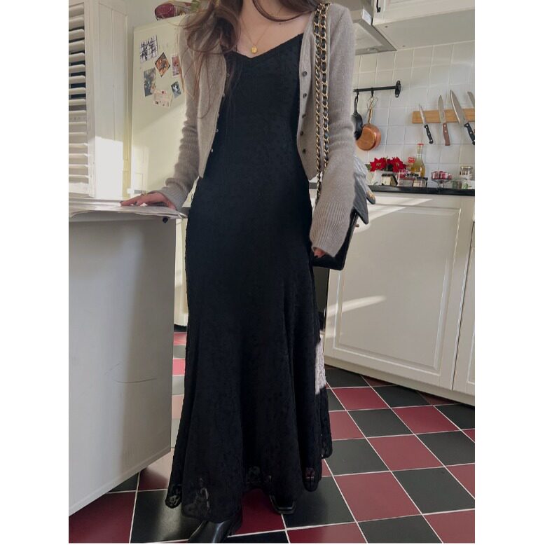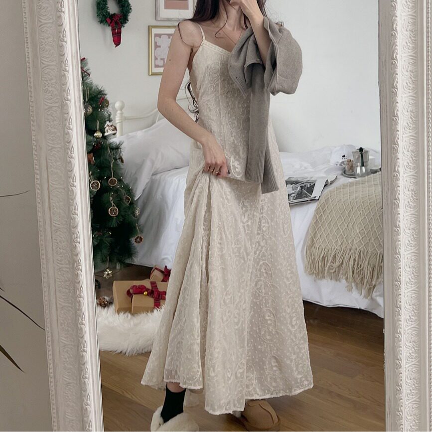 韩国chic2026春夏新款INS极简慵懒浪漫蕾丝吊带连衣裙中长款裙子