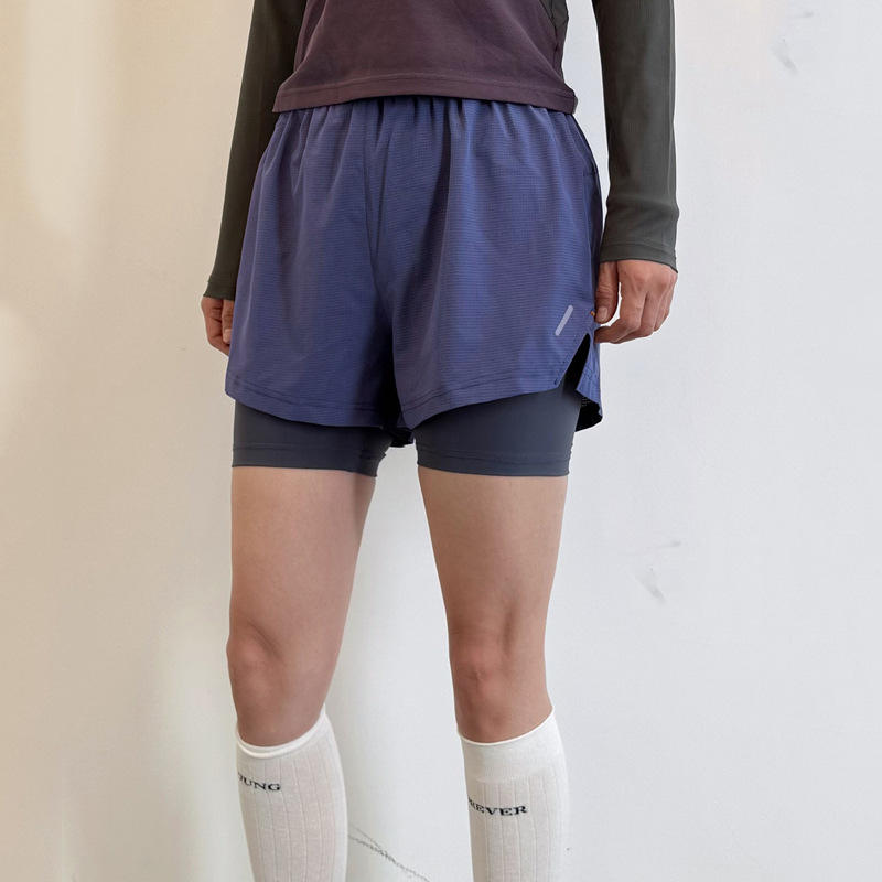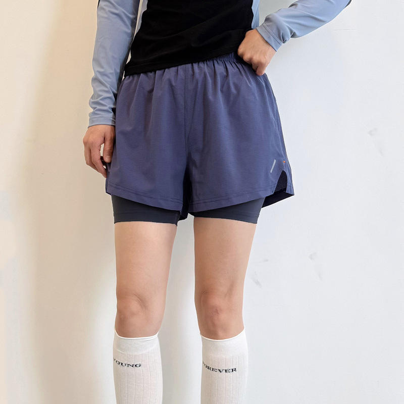 运动短裤女夏薄款瑜伽速干大码假两件健身裤防走光显瘦跑步运动裤