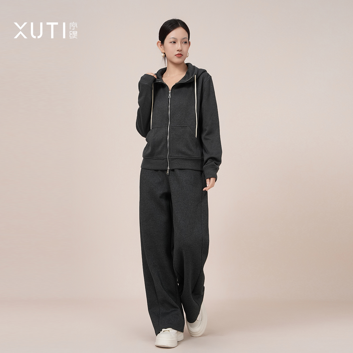 序缇质造秋季休闲套装女连帽拉链卫衣外套+宽松阔腿裤S82-21783