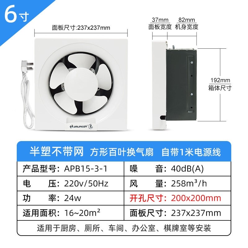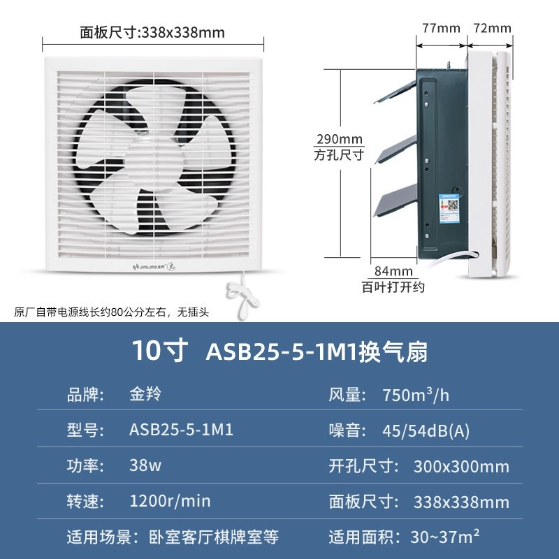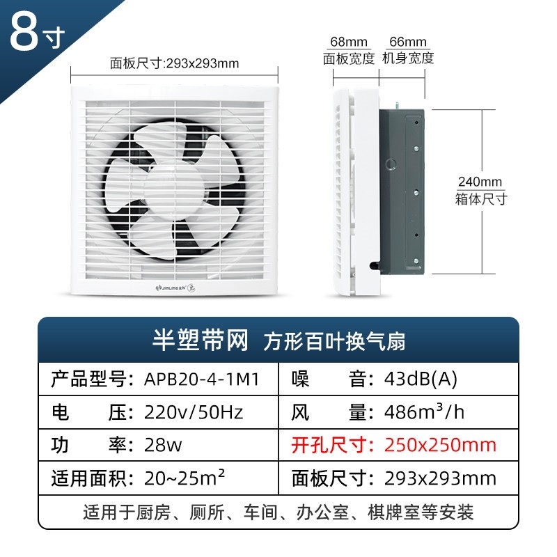 金羚双向百叶排气扇家用厨房卫生金属换风强力静音排风扇间换气扇