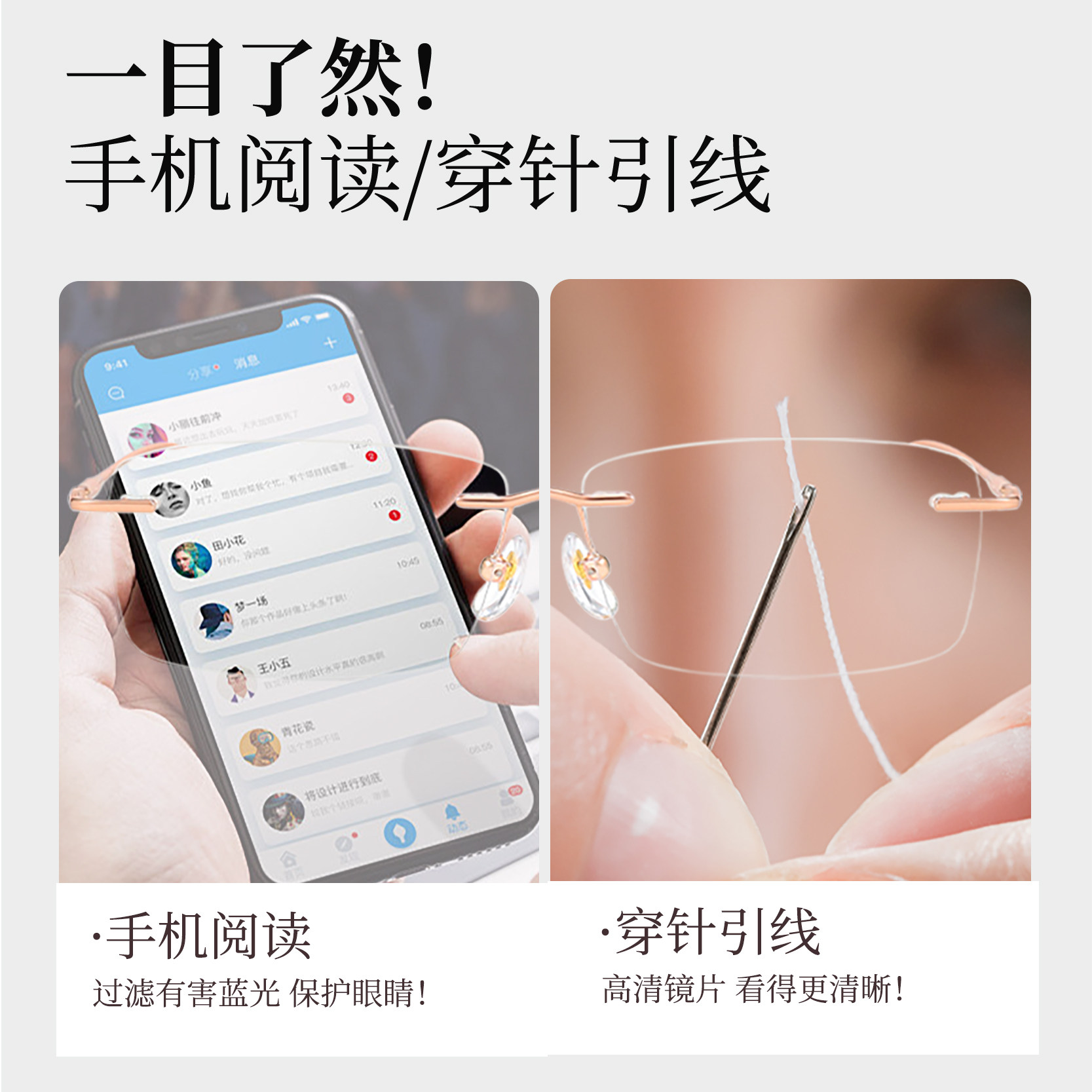 女士老花镜品牌高档正品官方旗舰店超轻纯钛无框时尚洋气新款女款