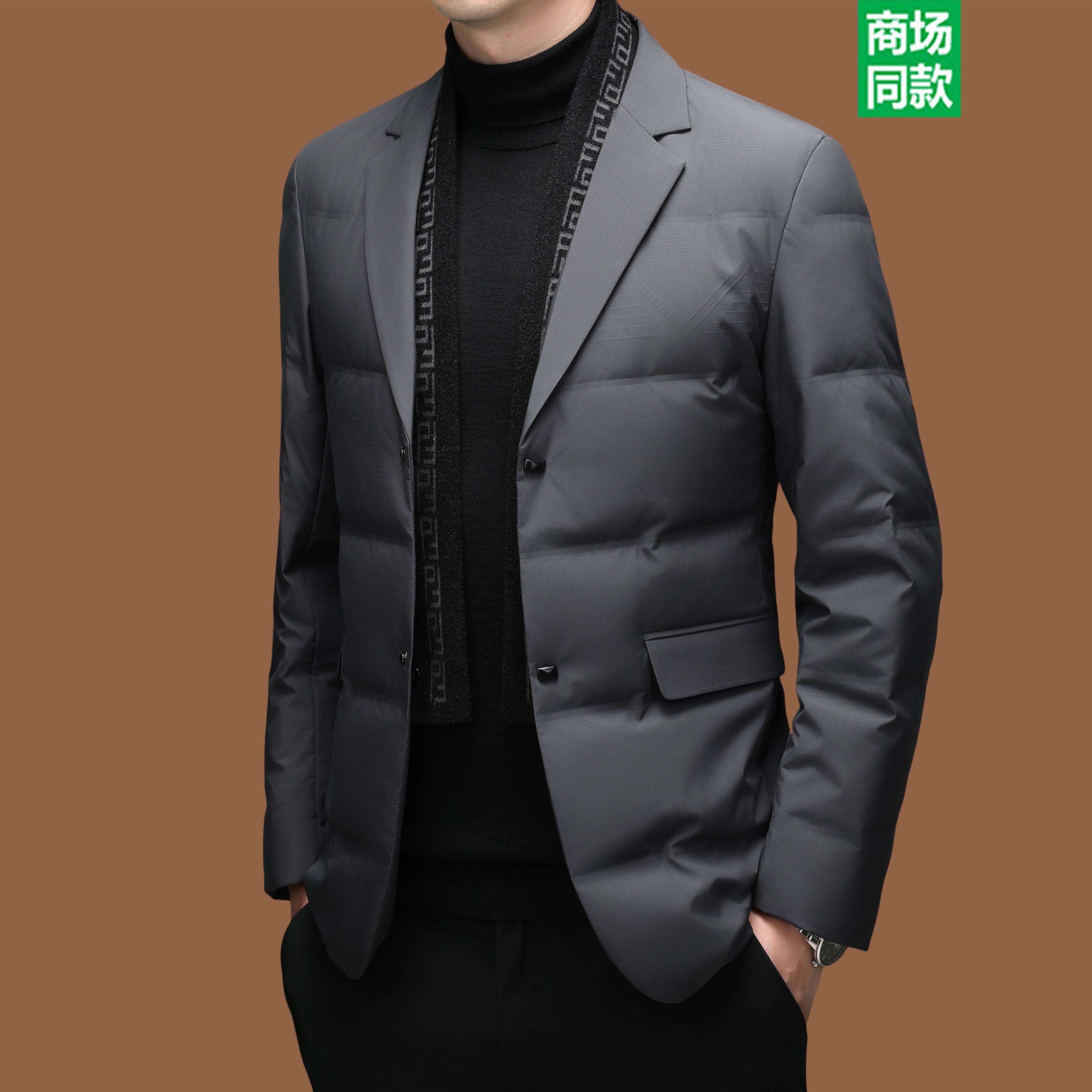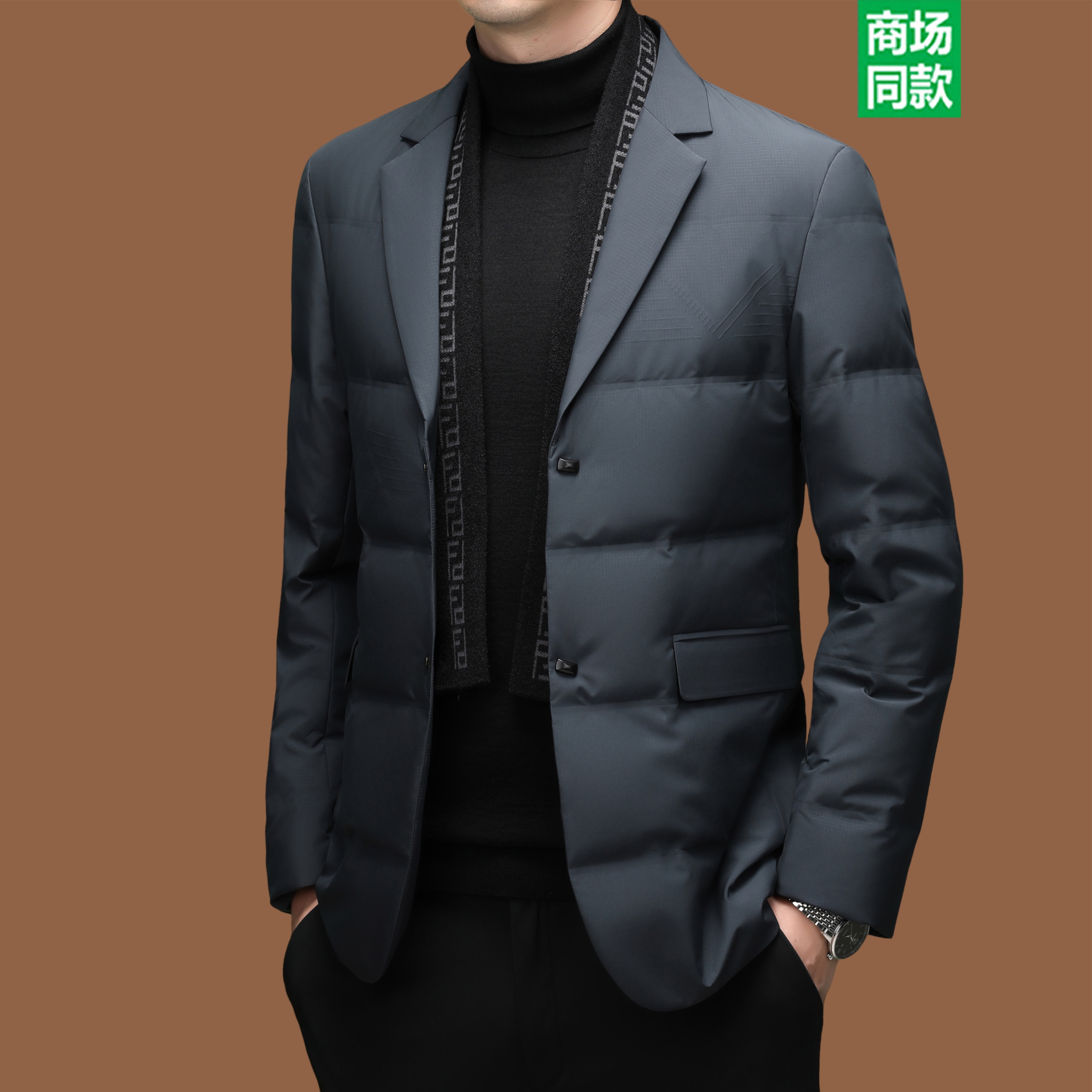 意大利男装冬季新款轻薄西装羽绒服商务修身白鸭绒时尚围巾领外套