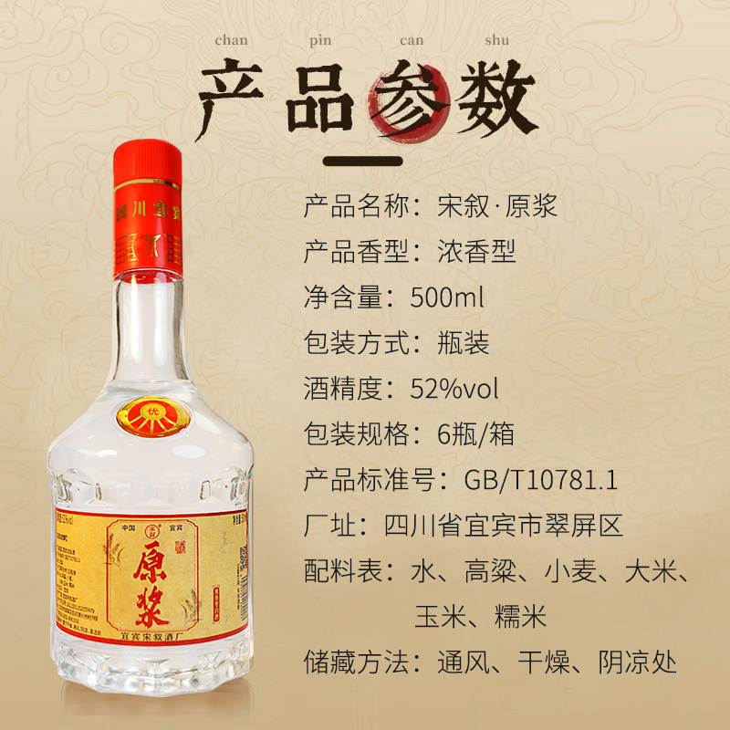 四川宜宾纯粮食白酒五粮浓香型原浆酒52度老酒500ml陈年送礼酒席