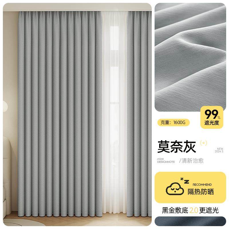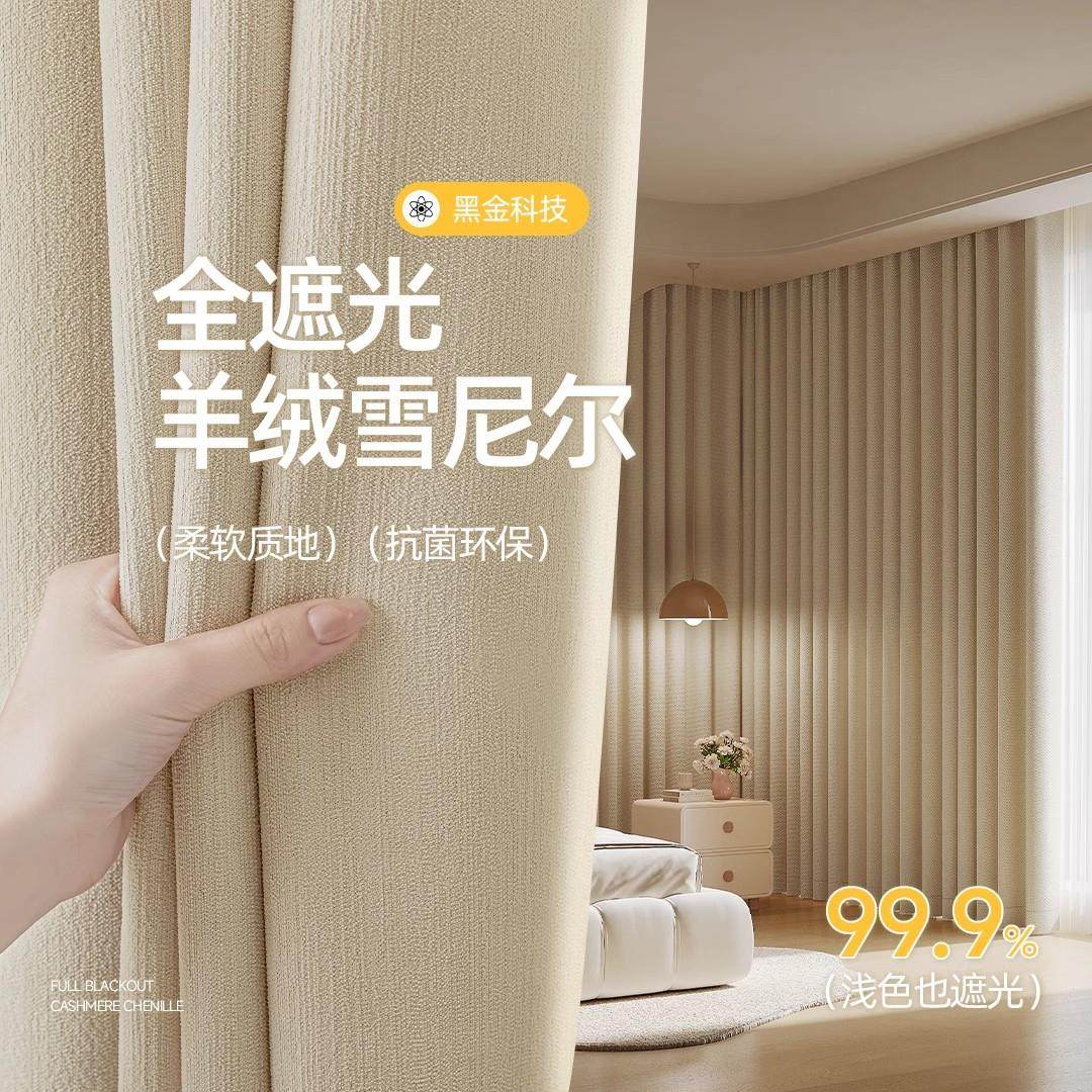 窗帘遮光加厚雪尼尔免打孔2024新款儿童房卧室少女全遮光法式羊绒