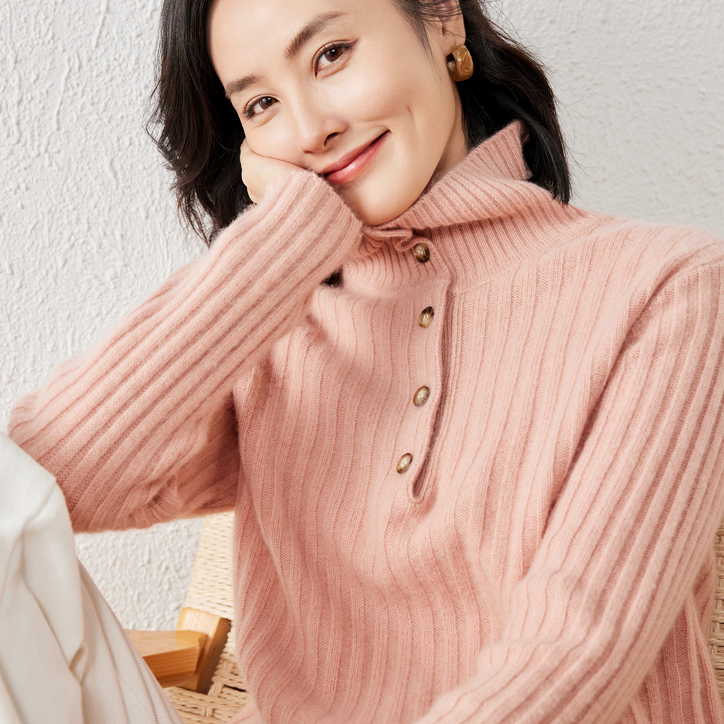 京绒羊2025秋冬翻领100%纯羊毛衫女士宽松显瘦加厚毛衣针织打底衫