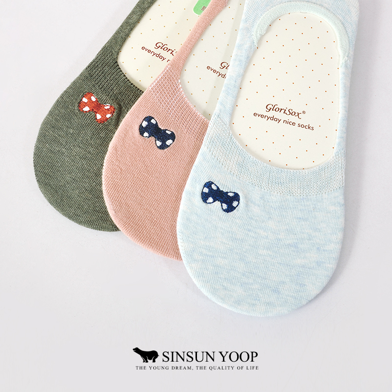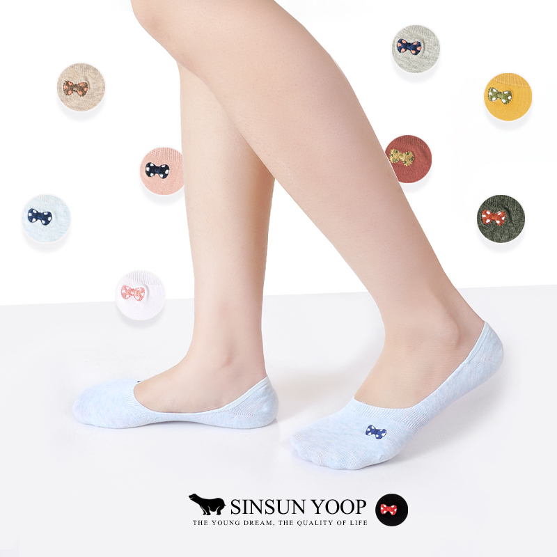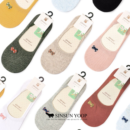 5双装小清新隐形袜 纯棉浅口硅胶防滑防脱女袜刺绣蝴蝶结船袜女夏