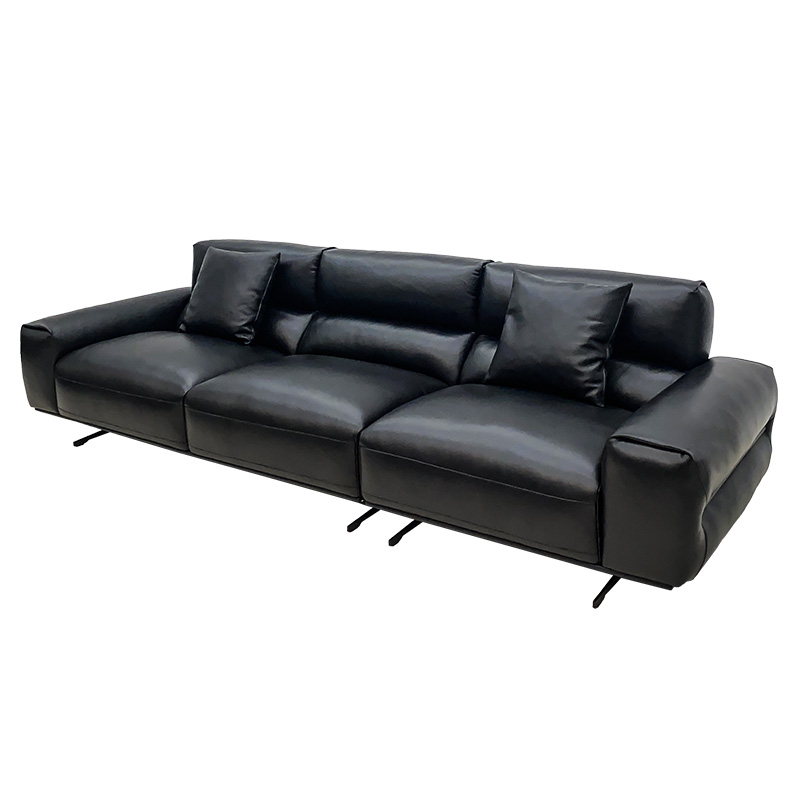 爱依瑞斯雪橇沙发包豪斯风格黑色全真皮高脚直排三人位高靠背沙发