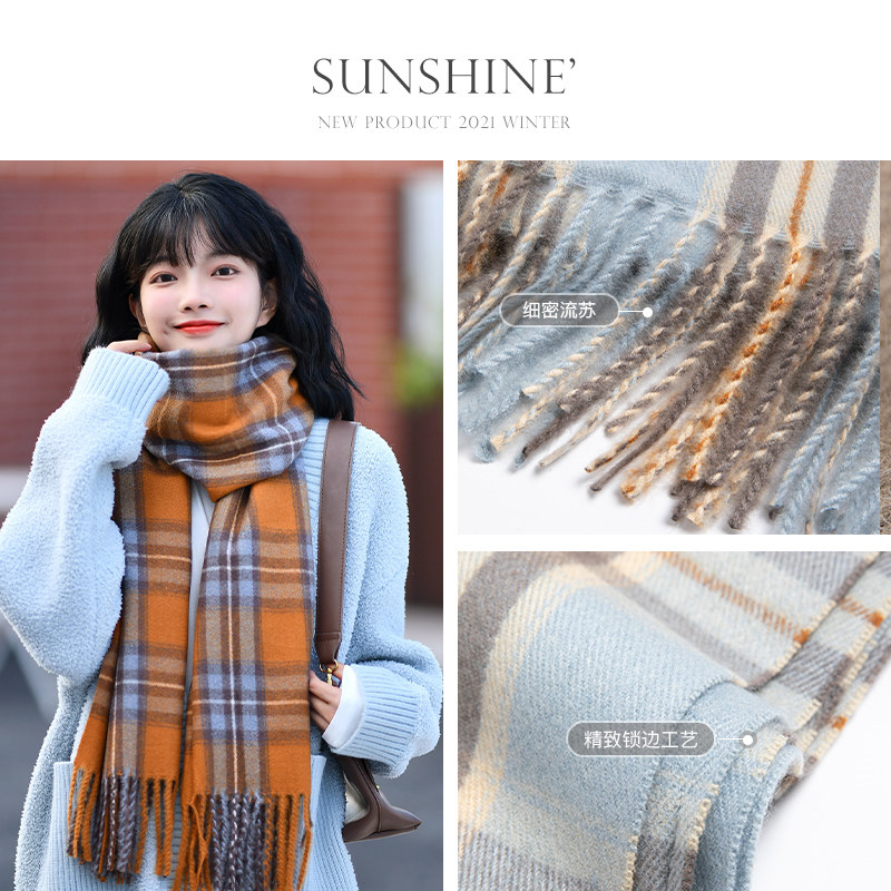 Siggi 围巾女冬季韩百搭加厚保暖女友生日礼物仿羊绒格子围脖礼盒