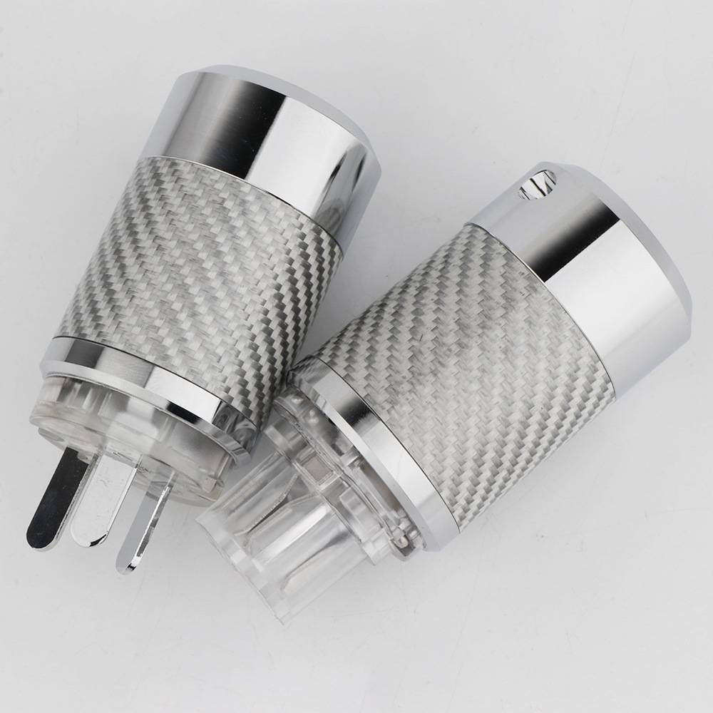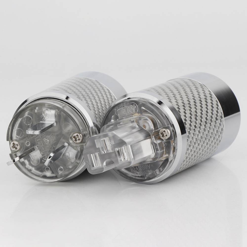 Preffair 澳标镀铑国标白碳纤电源线插头 音响HIFI发烧CD功放插头