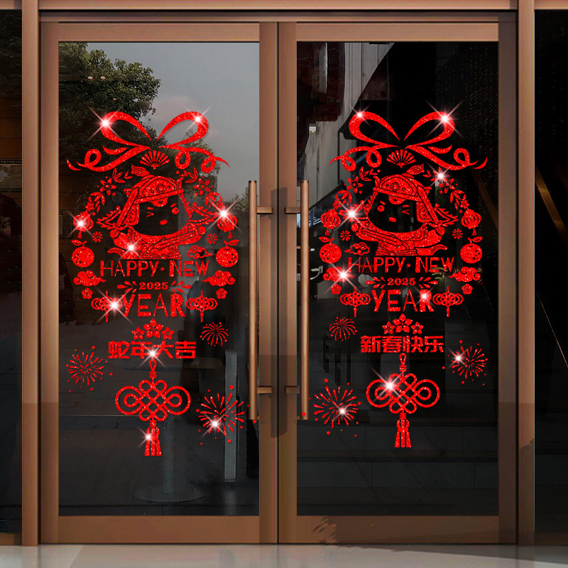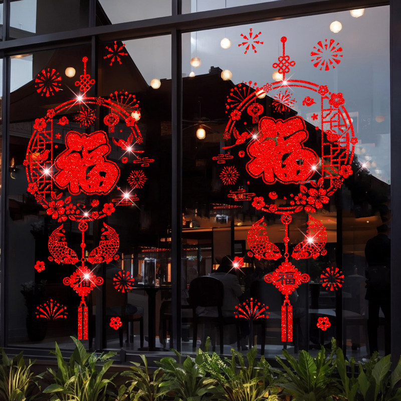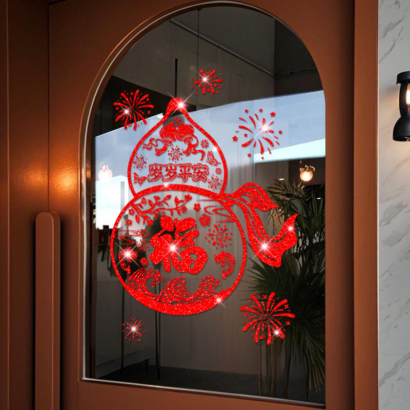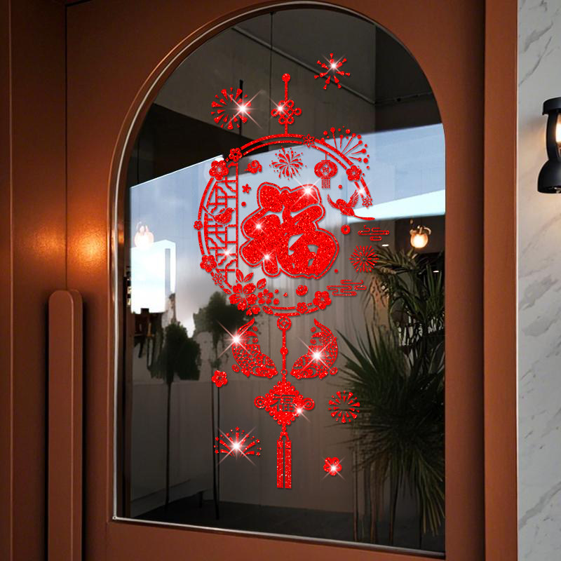 2026福字门贴静电贴撒金马年新年装饰窗花贴春节过年窗户玻璃窗贴
