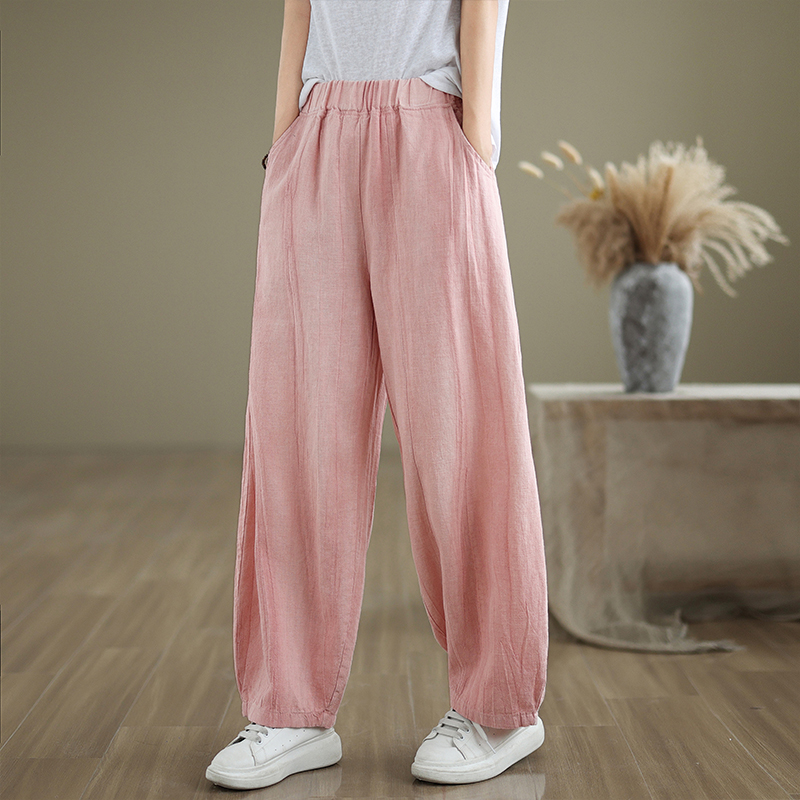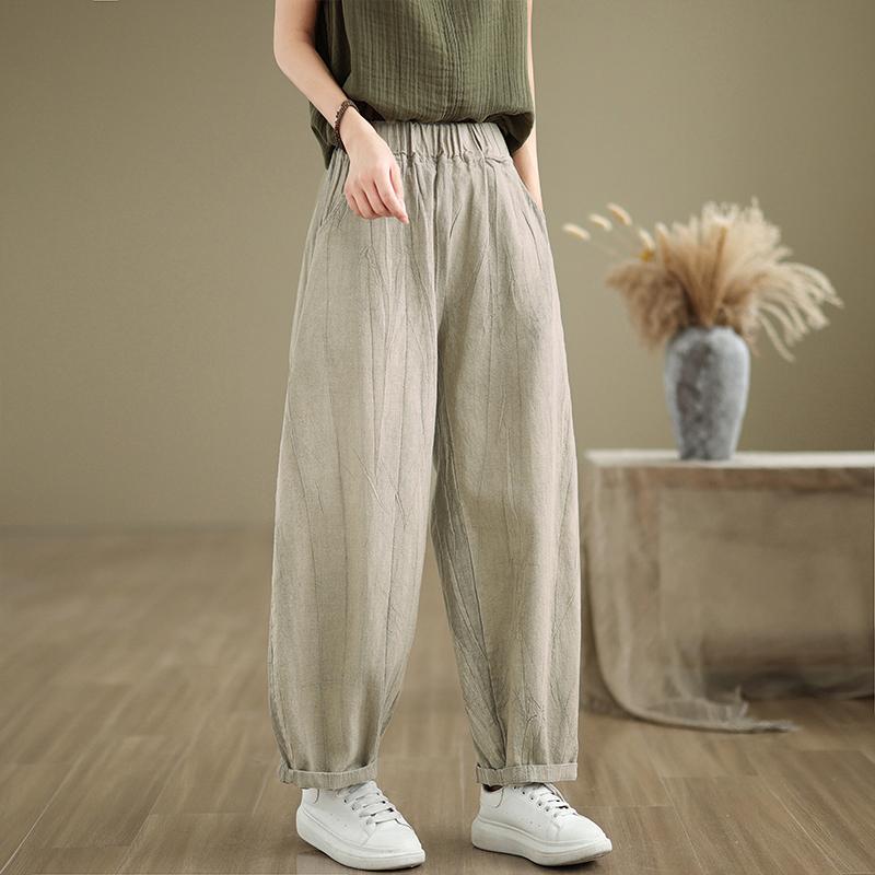 复古做旧苎麻九分灯笼裤女宽松高腰显瘦垂感棉麻阔腿裤休闲哈伦裤