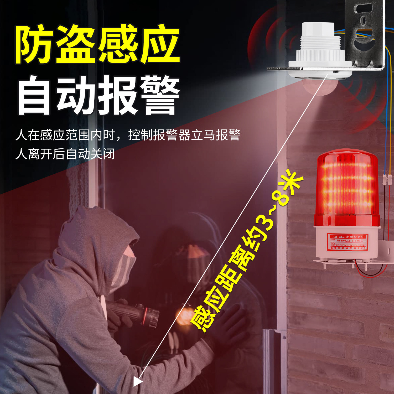 红外人体感应声光报警器家用户外防盗感应开关控制延时可调警示灯