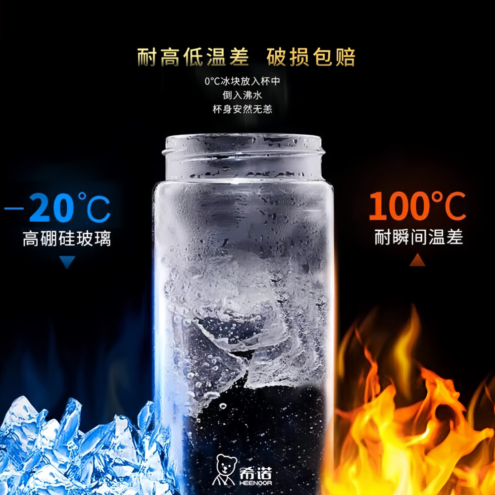 希诺玻璃杯单层加厚大容量泡茶杯男女运动耐热水杯便携车载水杯子