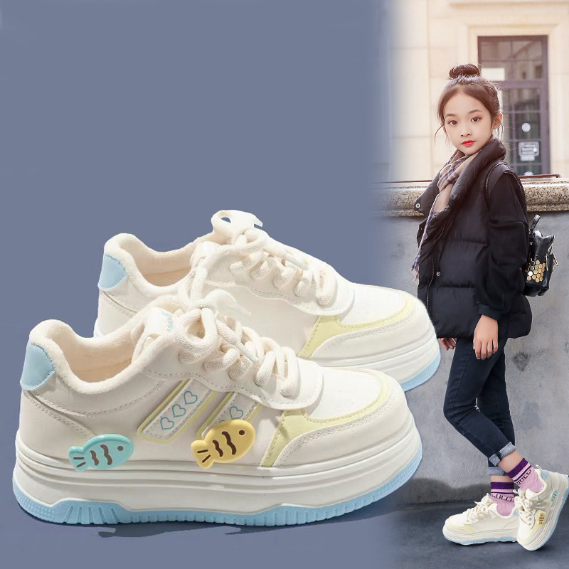 女童板鞋2025秋冬季加绒保暖儿童运动鞋中大童百搭休闲小白鞋防滑