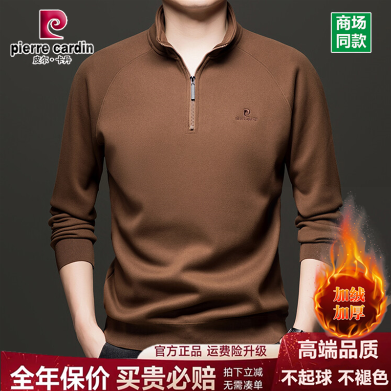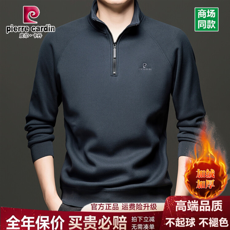 皮尔卡丹高档男士百搭长袖卫衣冬季加绒加厚立领保暖羊绒毛打底衫