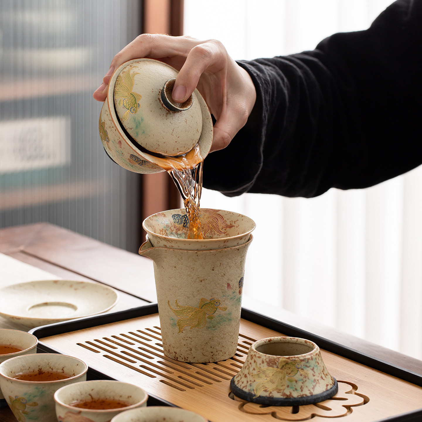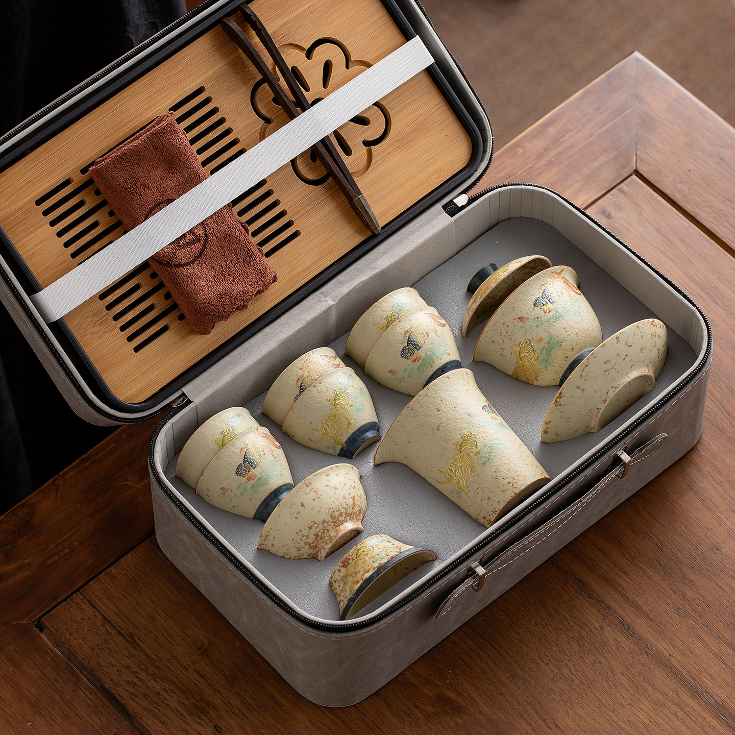 年年有鱼旅行茶具套装户外喝茶便携式收纳旅游泡茶装备盖碗茶杯