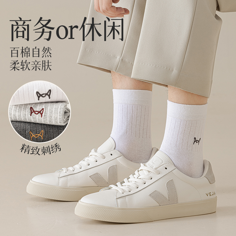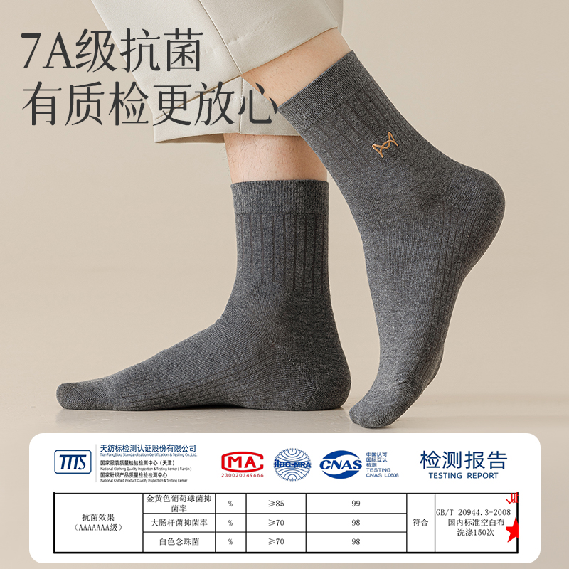 【7A抗菌】猫人袜子男士中筒袜100%纯棉防臭吸汗防臭商务长袜男款