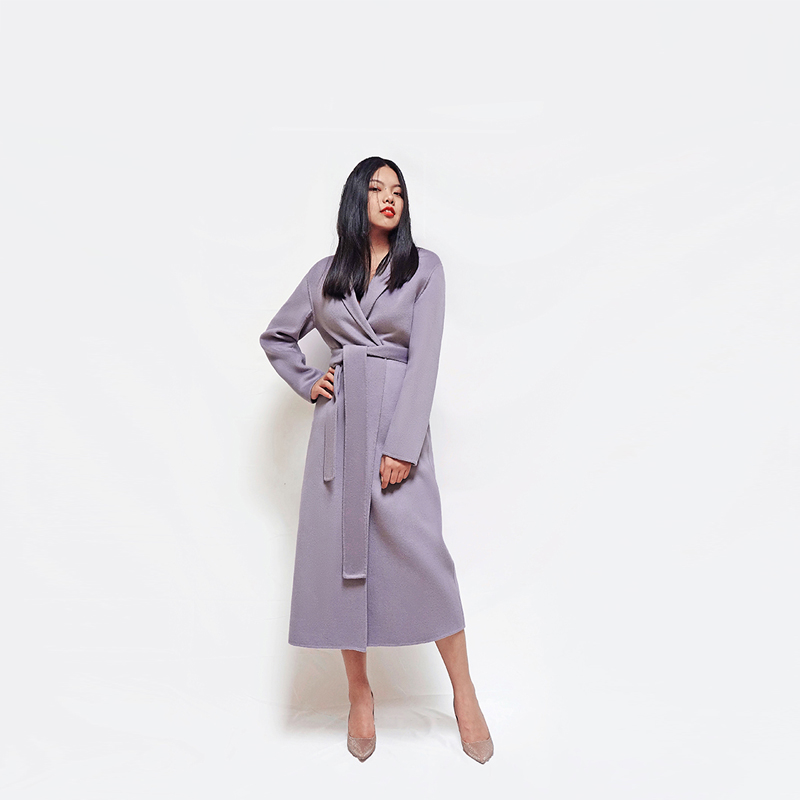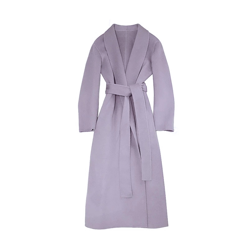 秋冬香芋紫双面羊绒大衣青果领中长款羊毛外套女毛呢大衣气质款