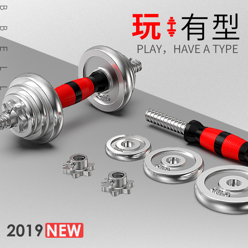 电镀哑铃杠铃男士 健身20公斤40 50 60 100KG健身家用举重套装