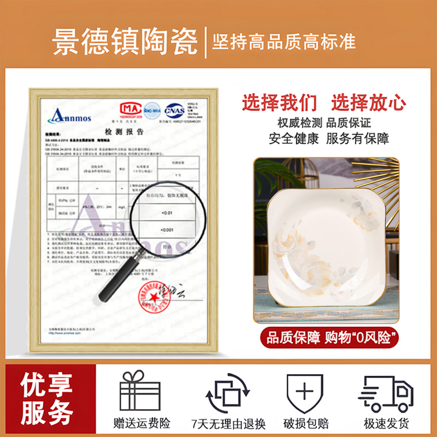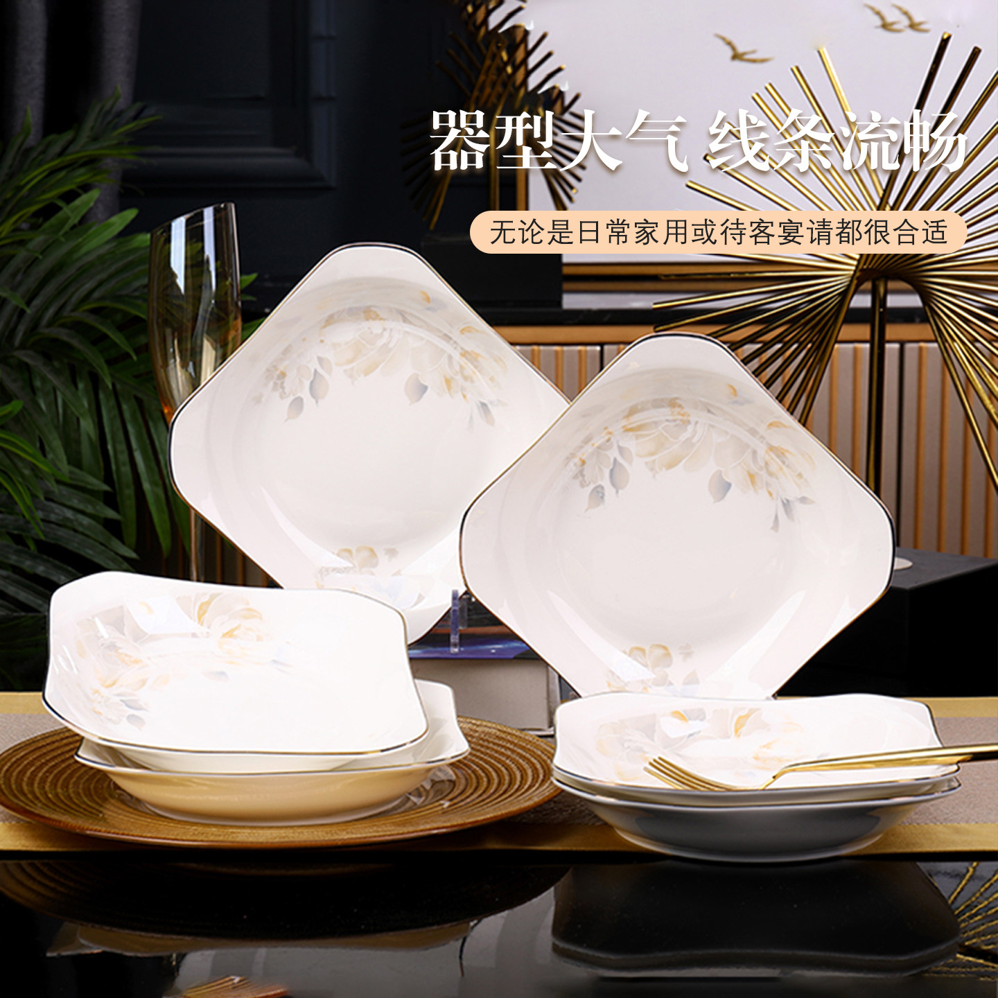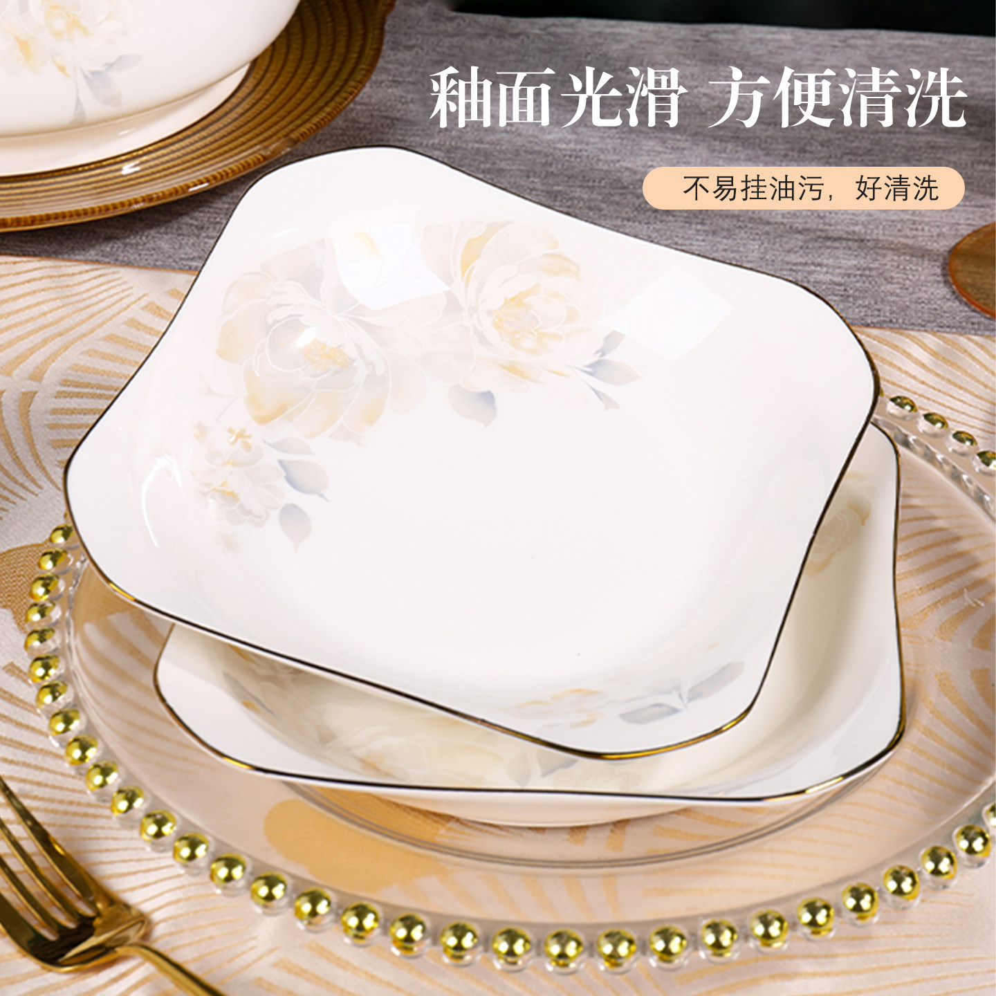 8.5英寸方形盘子家用2026新款菜盘景德镇陶瓷餐具方盘果盘