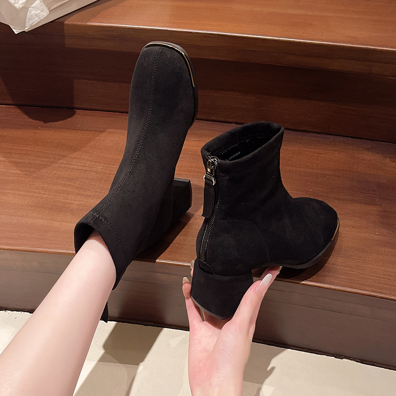 高跟短靴子2025新款秋季弹力瘦瘦靴法式韩系小踝靴时尚粗跟马丁靴