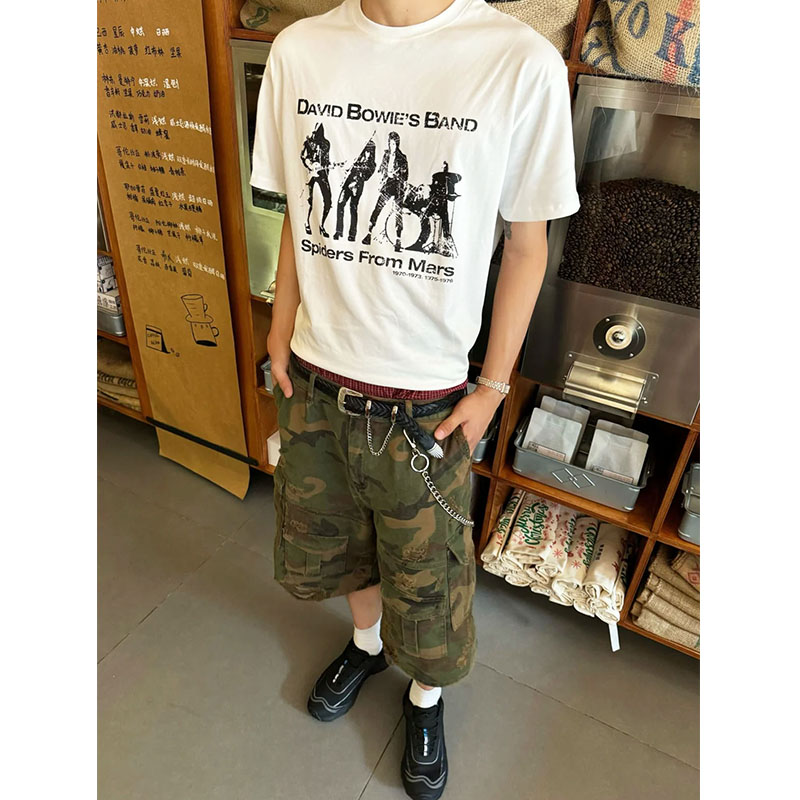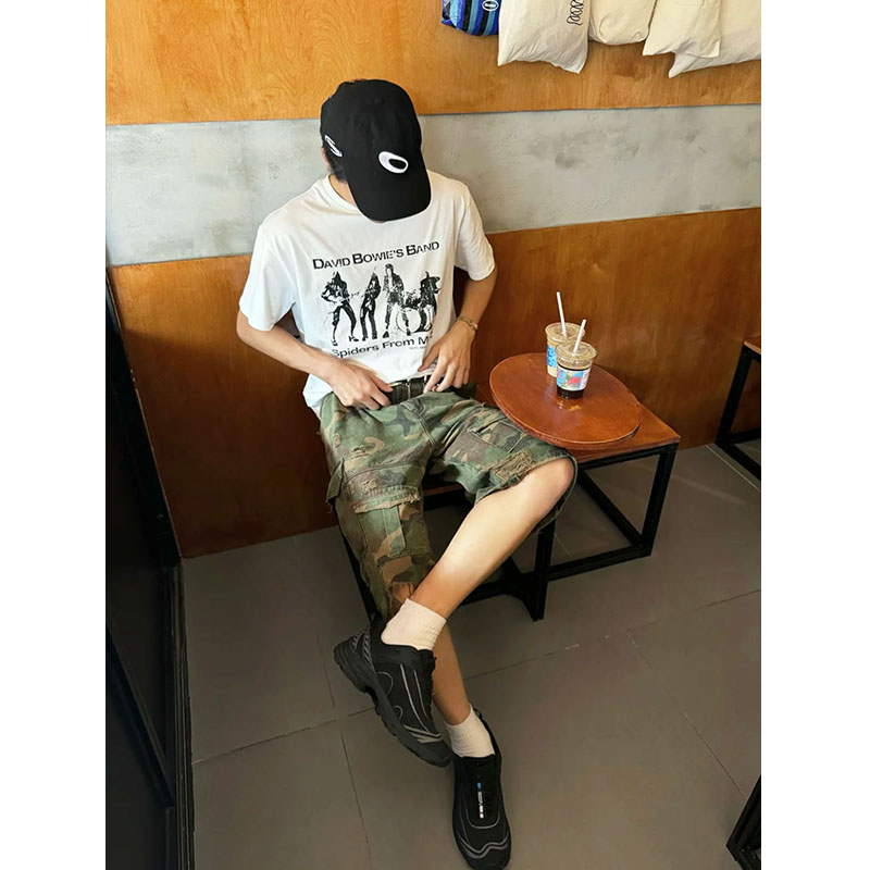破坏风复古迷彩工装短裤男女夏季街头美式嘻哈破洞阔腿牛仔七分裤